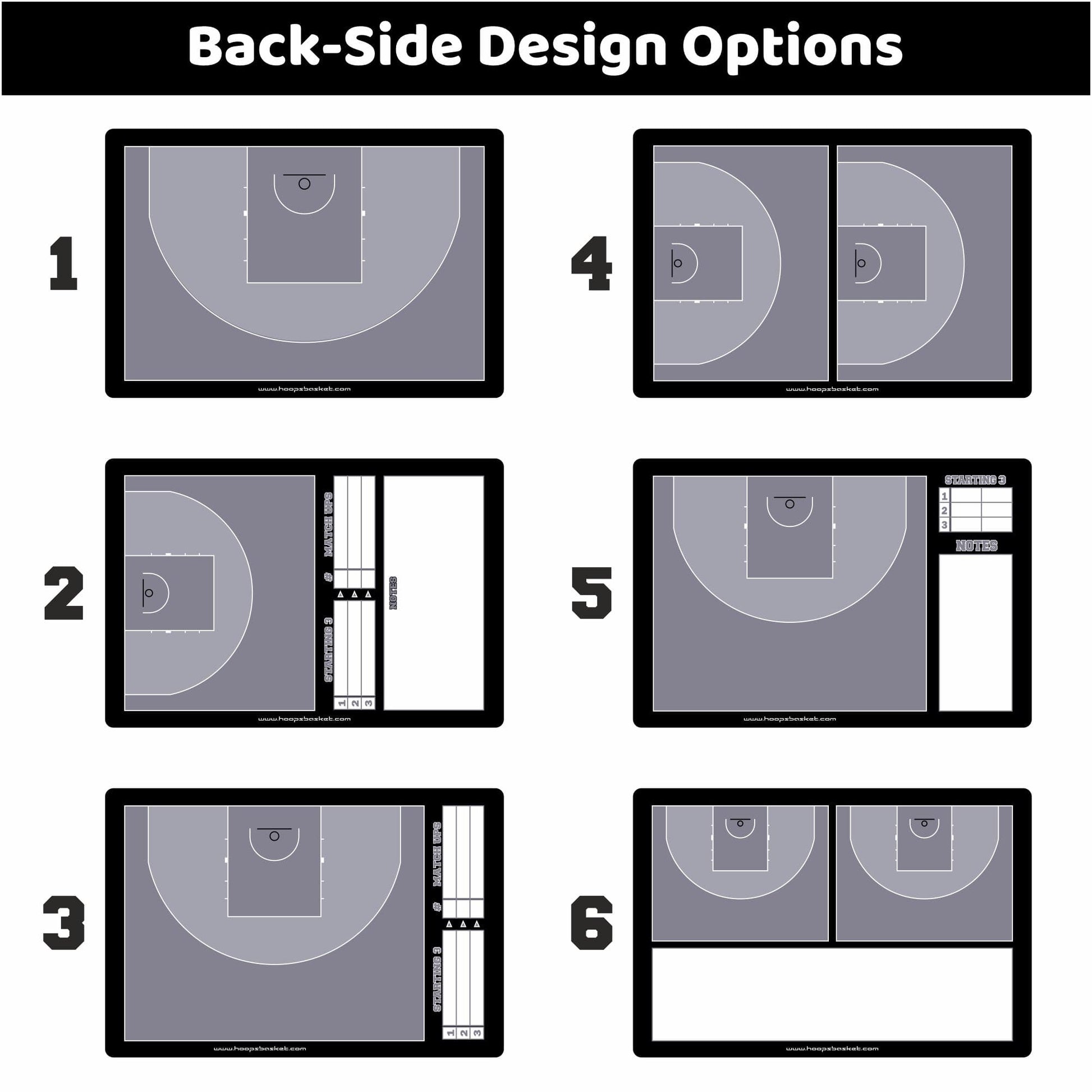 Choose from three different sizes and personalize your board with your name, color, and team logo. Six layout options on the backside allow maximum flexibility for your plays. Both front and back sides are fully customizable to match your team’s identity.