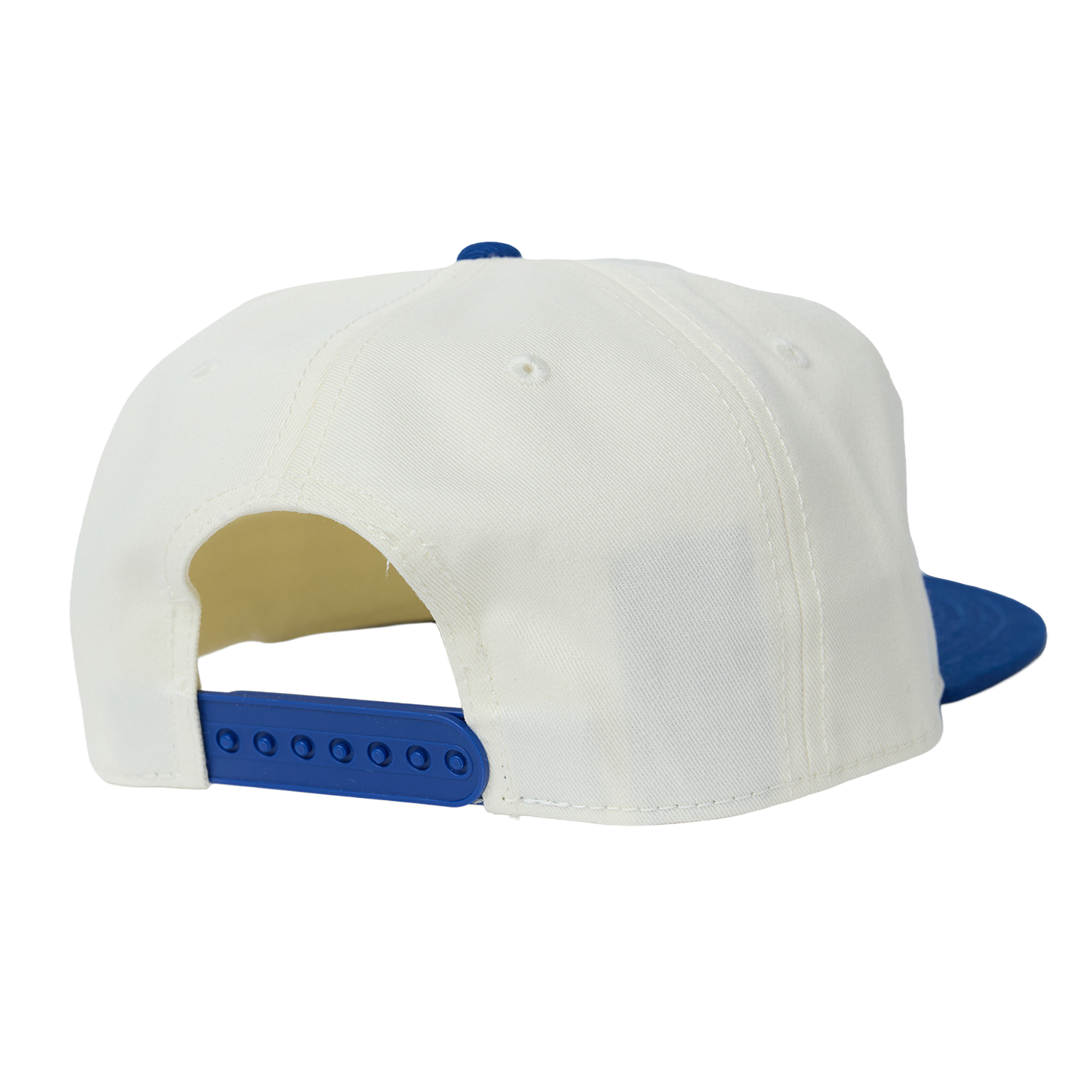 Contrast dome, plastic snapback, flat contrast peak, tonal eyelets. One size fits all. Shout out to Q.