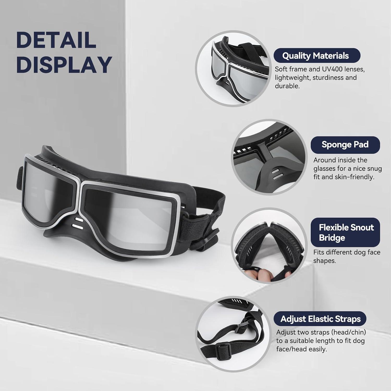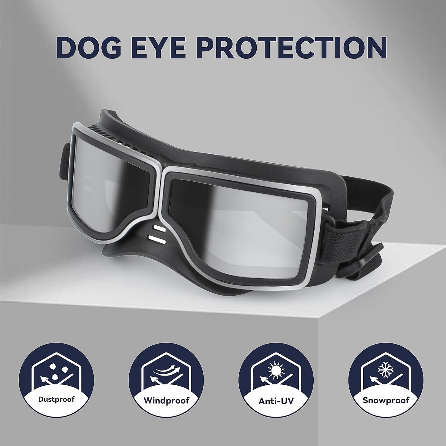 Dog Goggles Medium to Large Breed, Wide Snout, Anti-UV Sunglasses for Dogs Large Breeds, Windproof Driving Dog Eye Protection, Adjustable