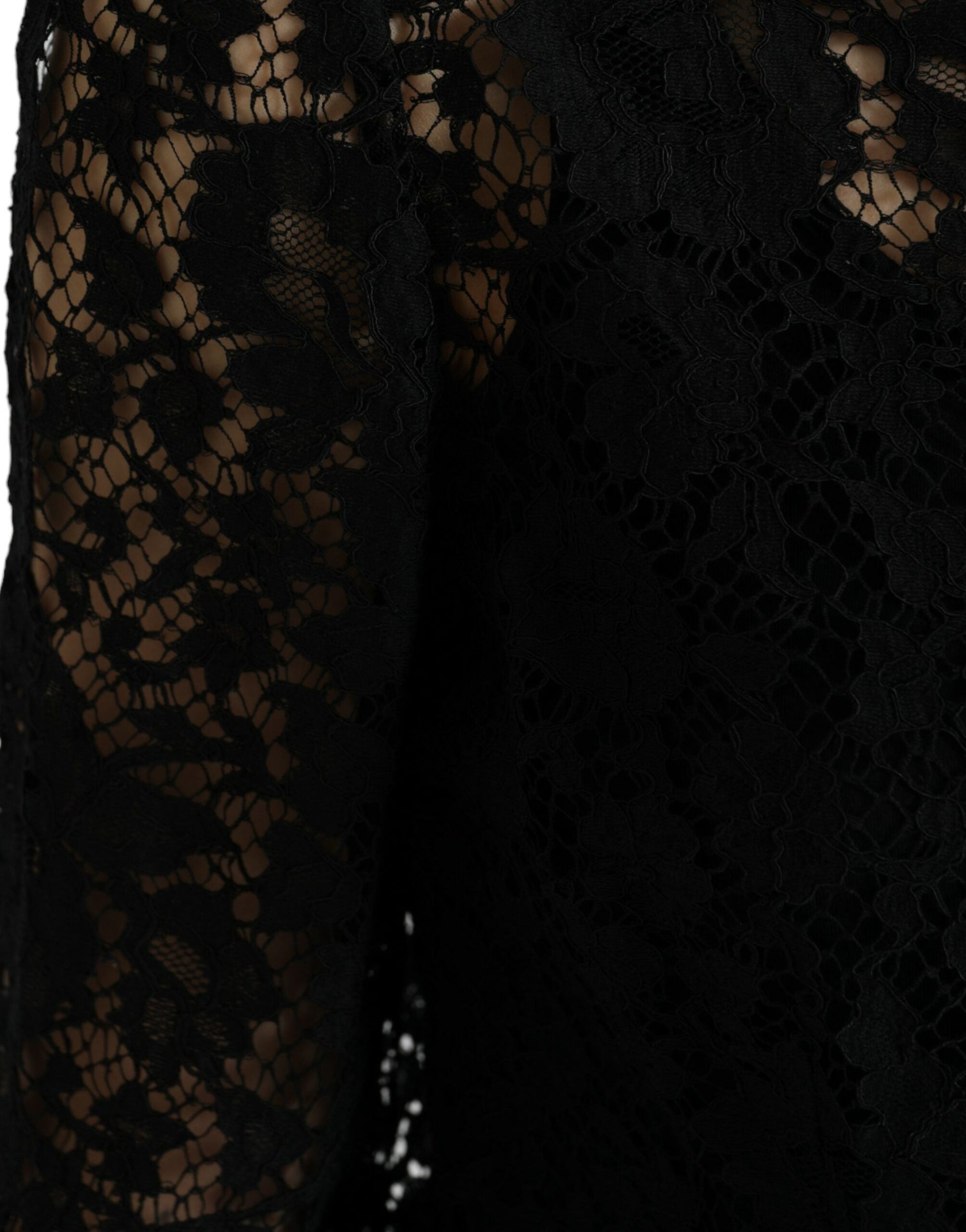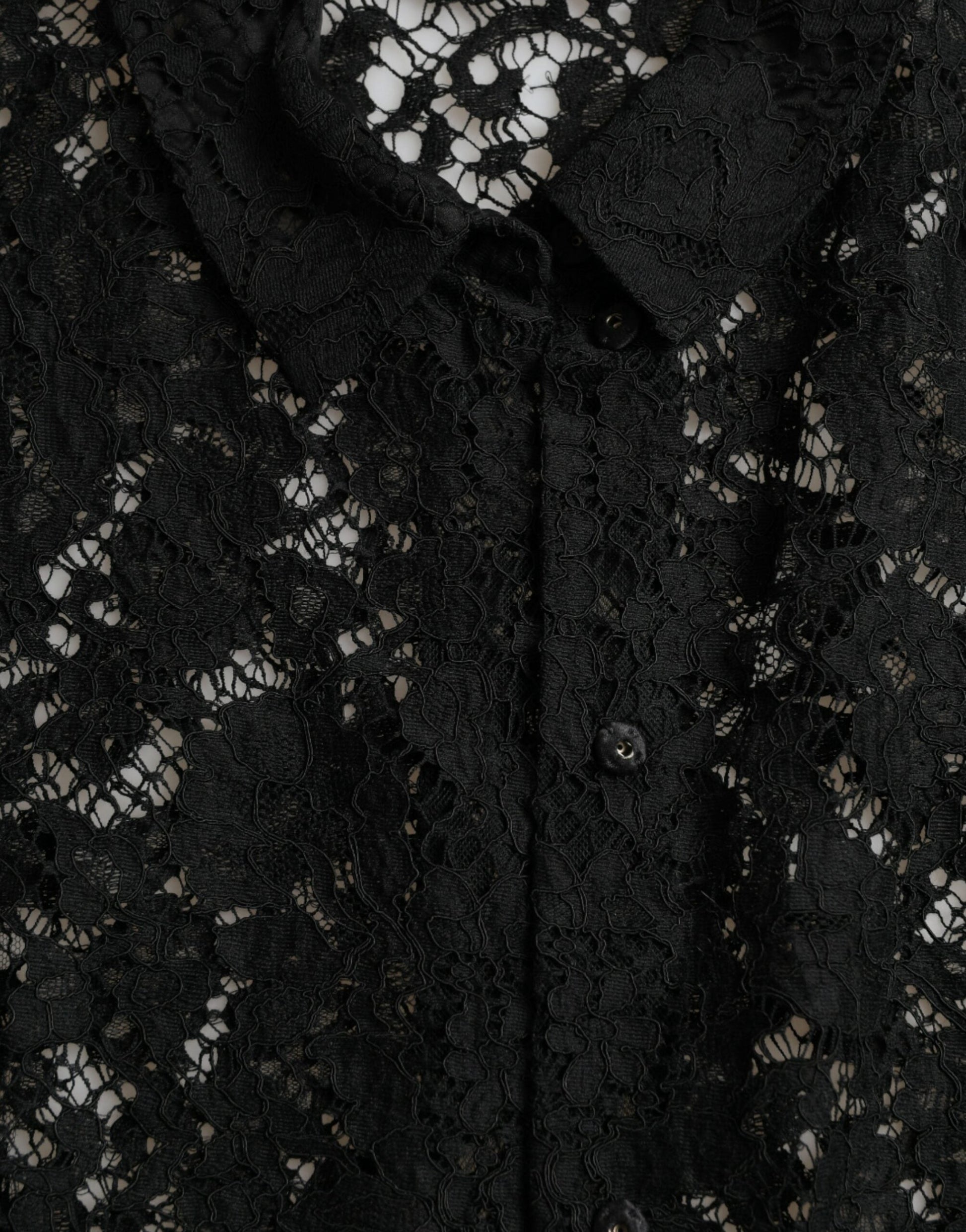 Dolce & Gabbana Black Floral Lace Long Sleeves Blouse Top