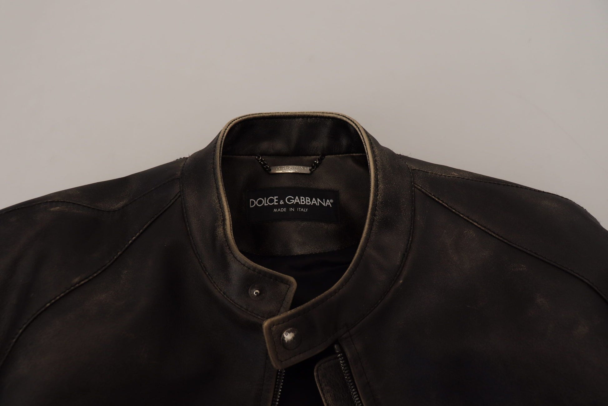 Dolce & Gabbana Black Leather Zipper Biker Coat Jacket