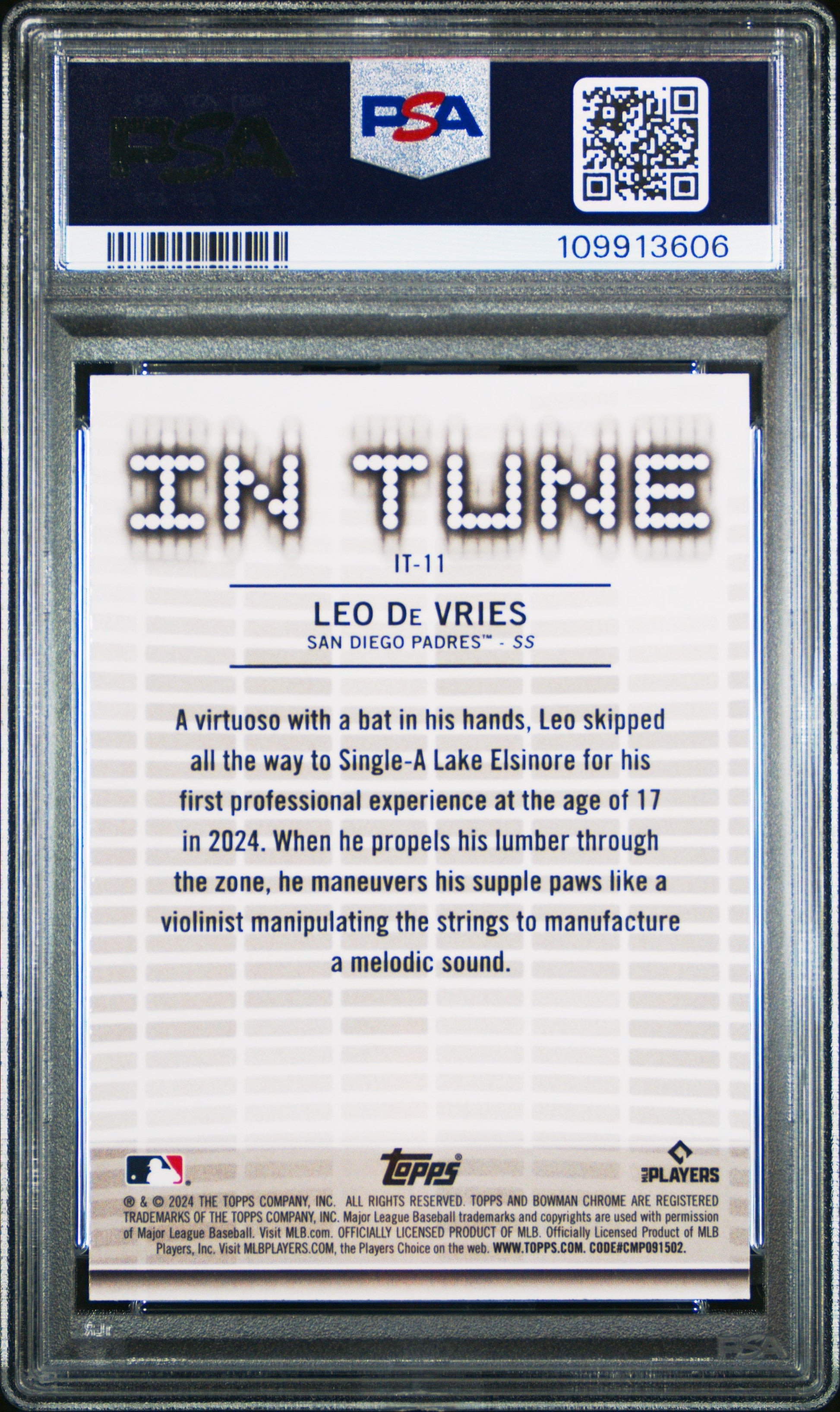 Graded 2024 Topps Bowman Draft Leo De Vries #IT11 In Tune Rookie RC Baseball Card PSA 10 Gem Mint