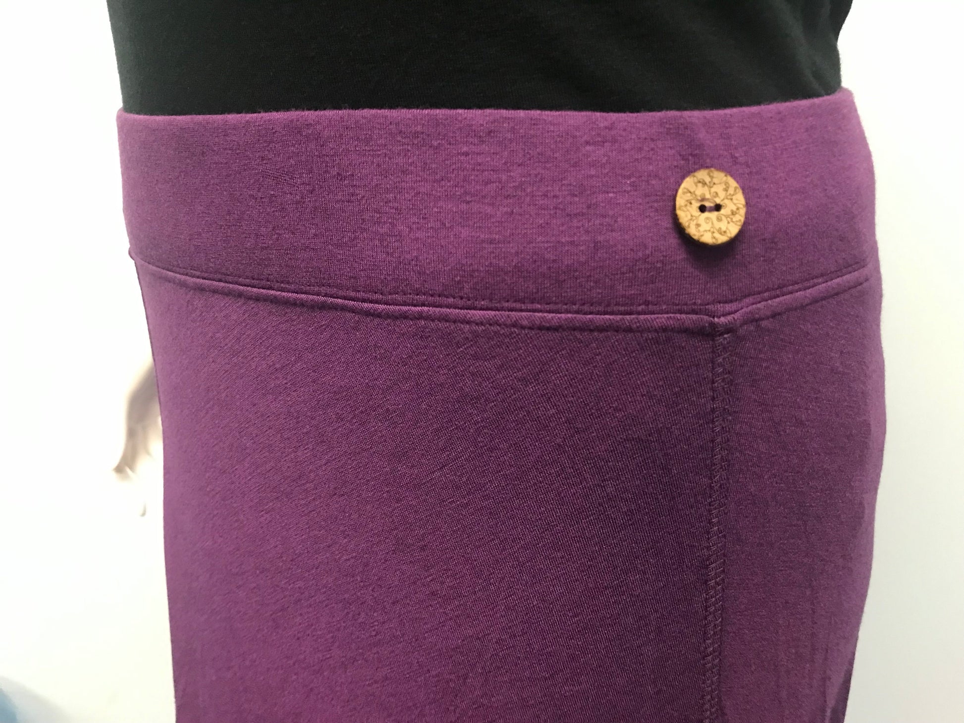 Flouncy skirt drapes smoothly from an elastic waistband and features a removable ribbon garter (the Skitch, included) that buttons to the waistband, keeping a portion of the skirt raised while cycling or to show off a pair of coordinating shorts. After reaching your destination, the Skitch can be worn down or removed, leaving what's underneath your own little secret. Pairs well with our Bloomers shorts and Pettipants. 2" comfort waistband can be folded over to shorten the skirt. Great for cycling, dancing and other activities, as well as for the office or an evening out. 67% Modal/28% Polyester/5% Spandex. Made in USA. Dry clean or hand wash.