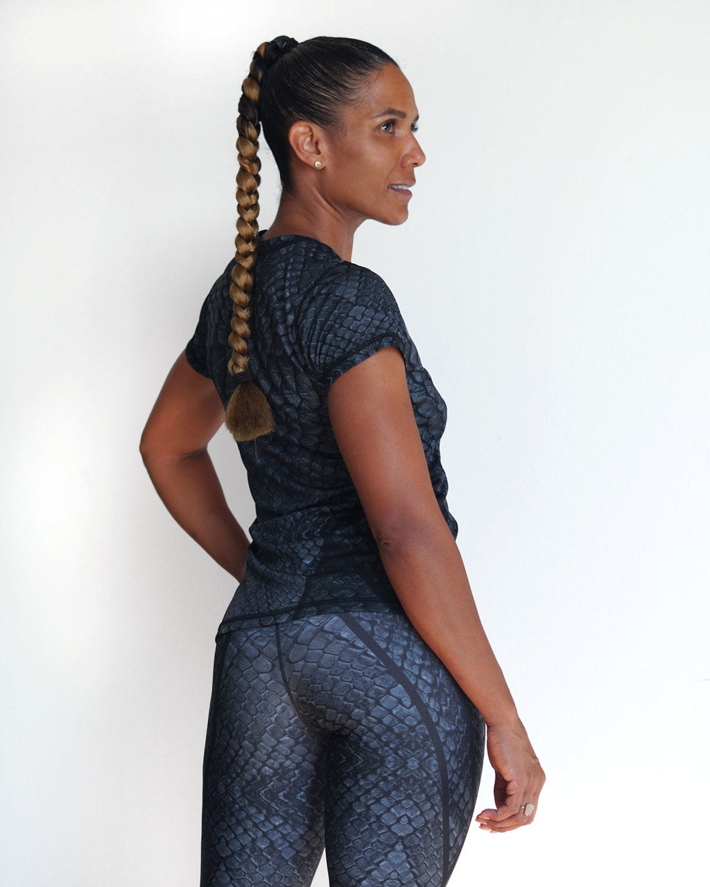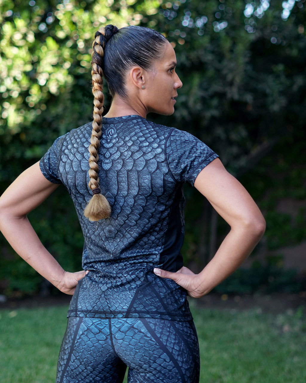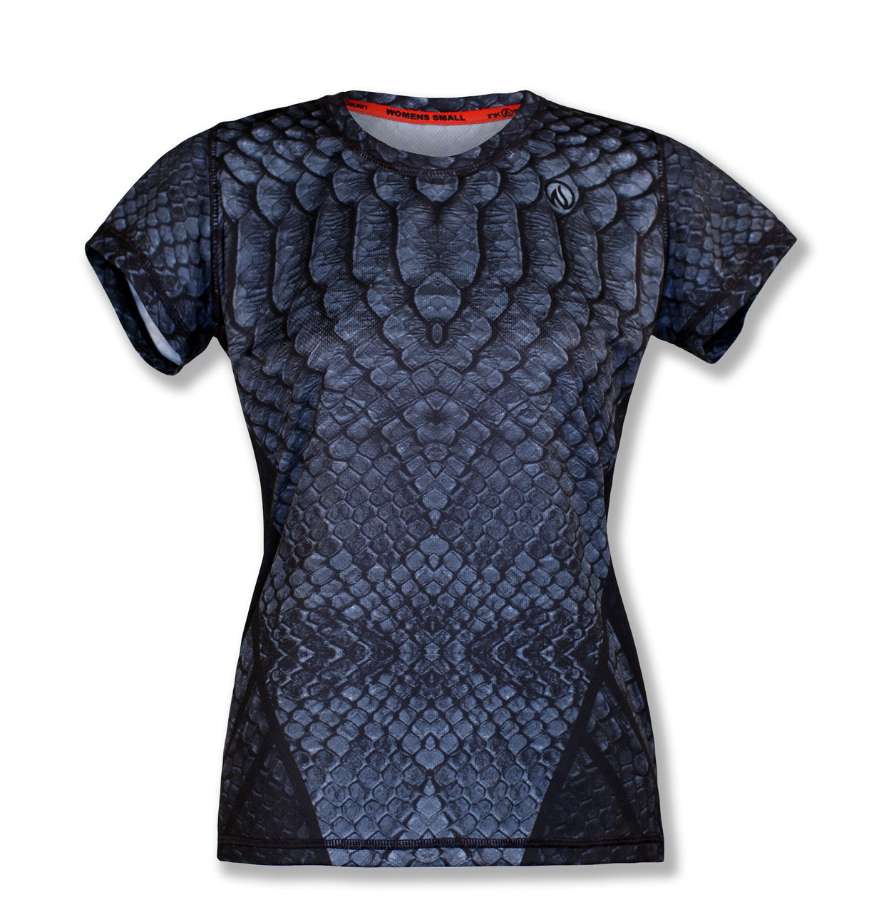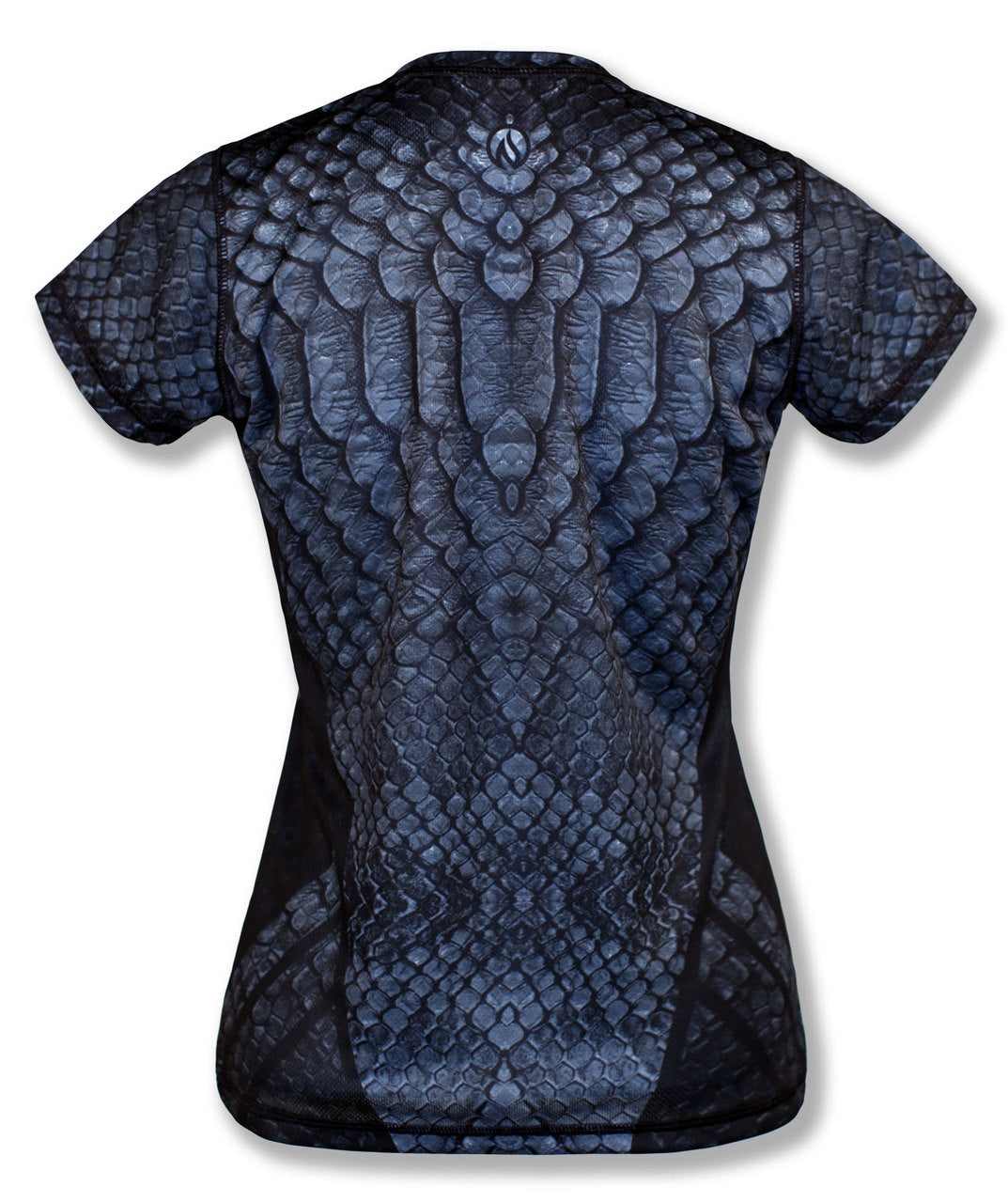 This Women's Stealth Tech Shirt is designed to fly under the radar but draw you in for a closer look. Evocative of a certain night fury dragon that appears out of the dark breathing fire and crushing the competition. The richly textured design started with the scales of the deadly Black Mamba, then shifts into overdrive to give it a faster, more sleek look. This Dry I.C.E. Tech Shirt will keep you cool and comfortable even when you are breathing fire from a tough workout. The perfect addition to your INKnBURN collection that will go with absolutely everything else we make