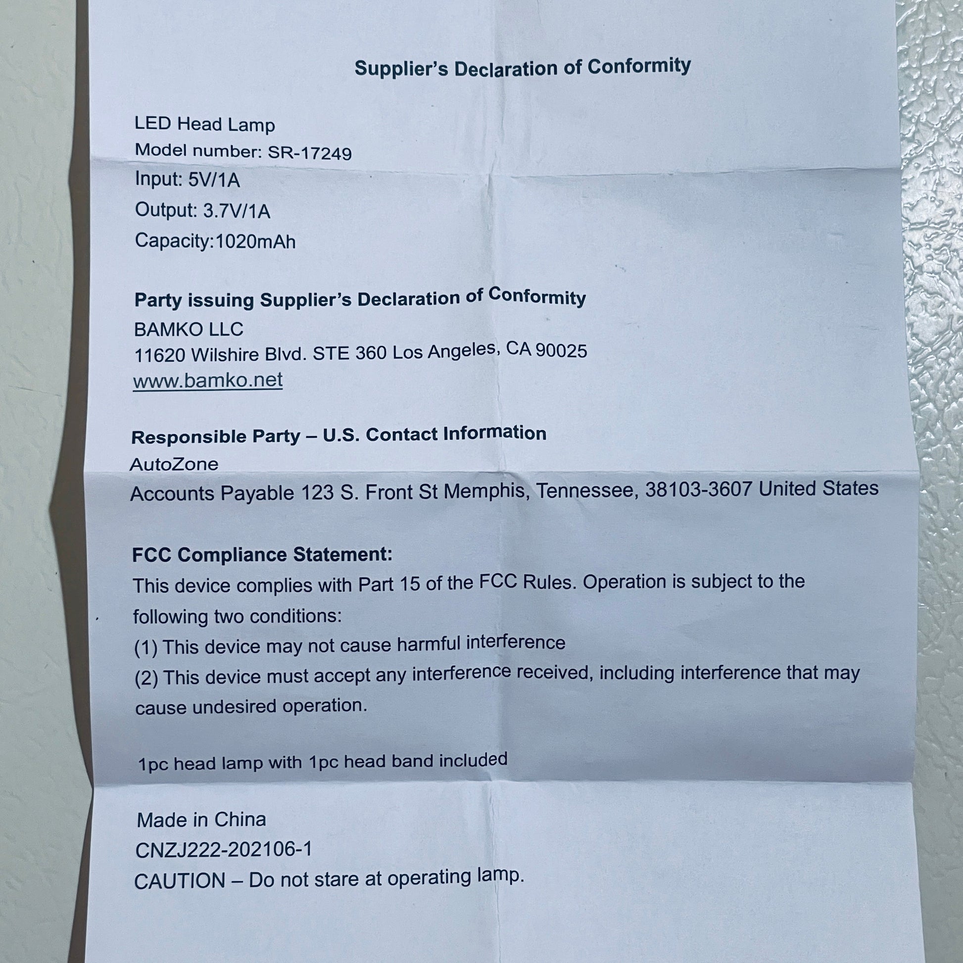 LED Headlamp – USB Rechargeable – White, Red, and Blue/Violet Lights – Adjustable Headband
