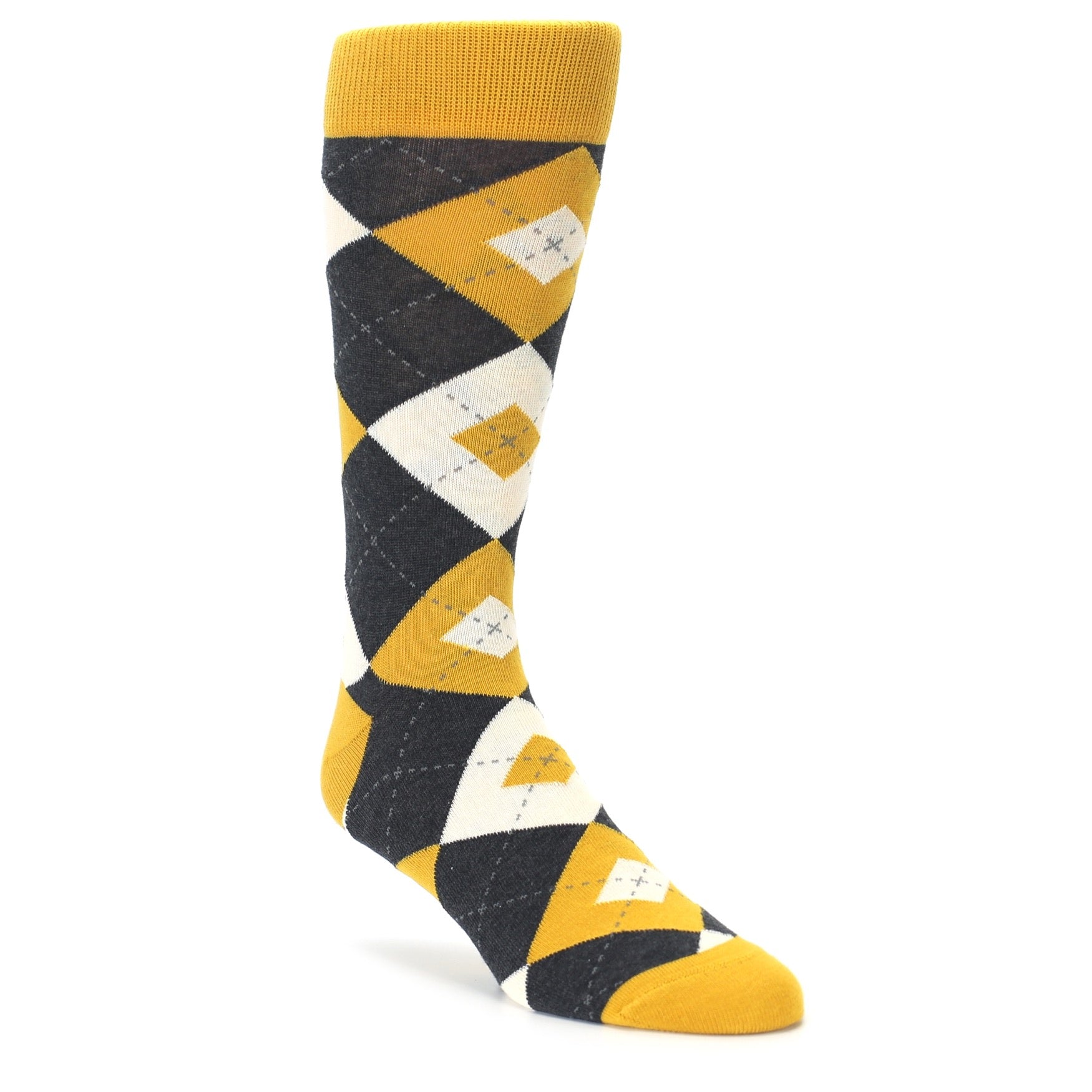 Mustard Yellow Grey Argyle Men's Dress Socks