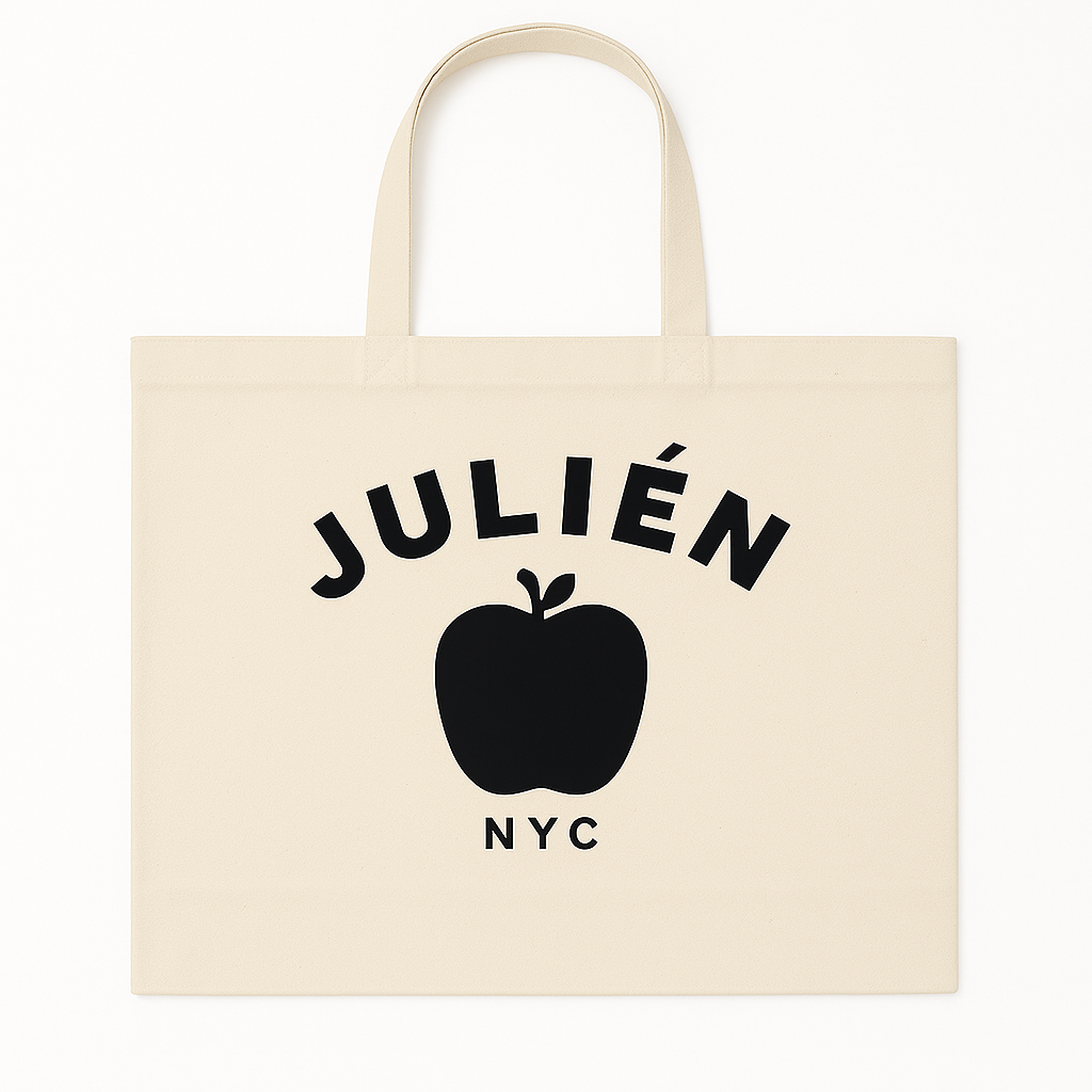 The JULIÉN NYC Everyday Tote carries more than your stuff — it carries the city with it. 19" x 15" of structured cotton built to take a beating and still look sharp, from corner store runs to gallery nights.