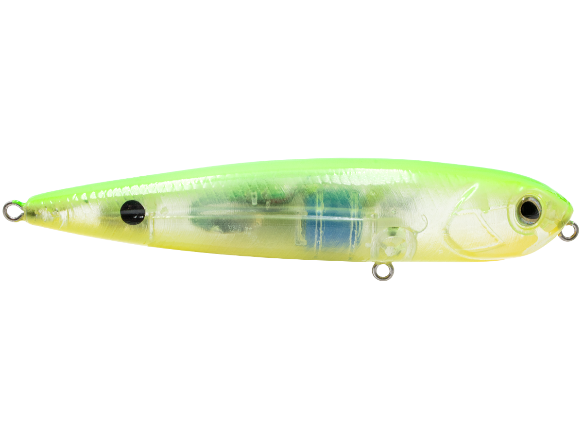 The WALKING BOSS Jr inshore model sports the same time-tested, side-to-side topwater sashay of its freshwater cousin, but with components and Electronic Baitfish Sounds that are science-tailored specifically for inshore species, such as redfish, trout, and snook. The Walking Boss's walk-the-dog action is a proven fish attractor, and this attraction is boosted by the power of EBS Technology! You'll be able to draw inshore fish from double the distance of traditional topwater baits.