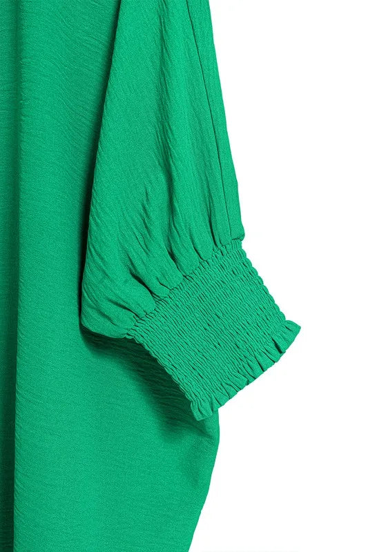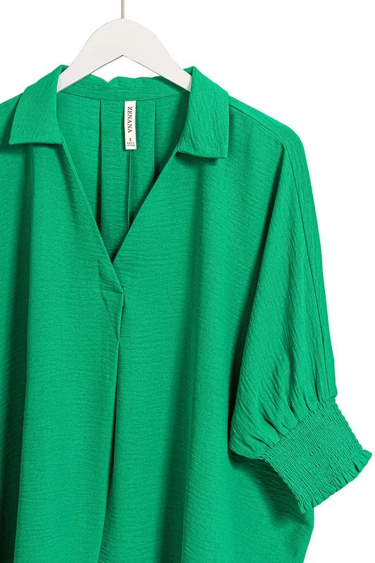 Zenana Airflow Collar Tee with Smocked Sleeve Band Top