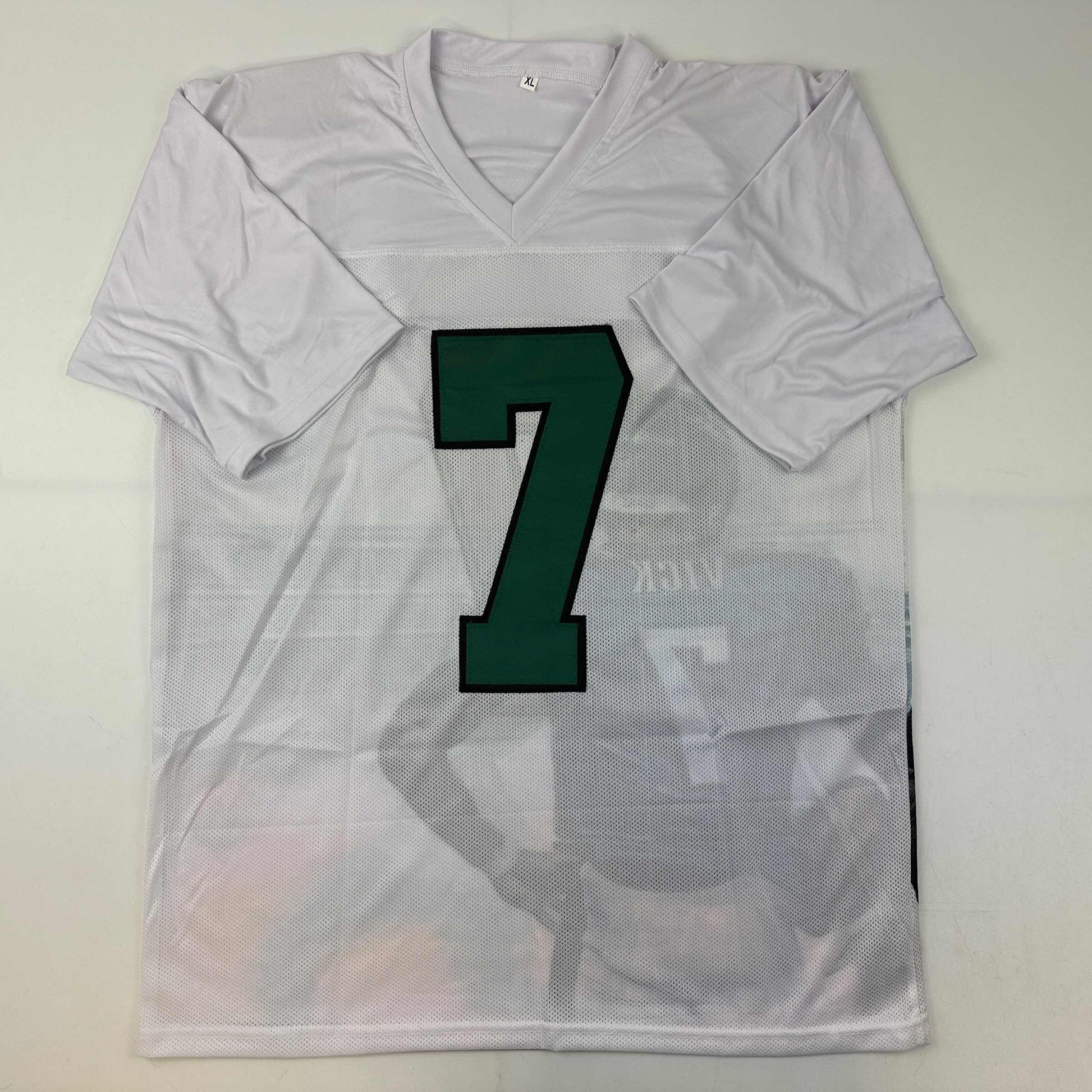 Autographed/Signed Michael Mike Vick Philadelphia White Artwork Photo Football Jersey JSA COA