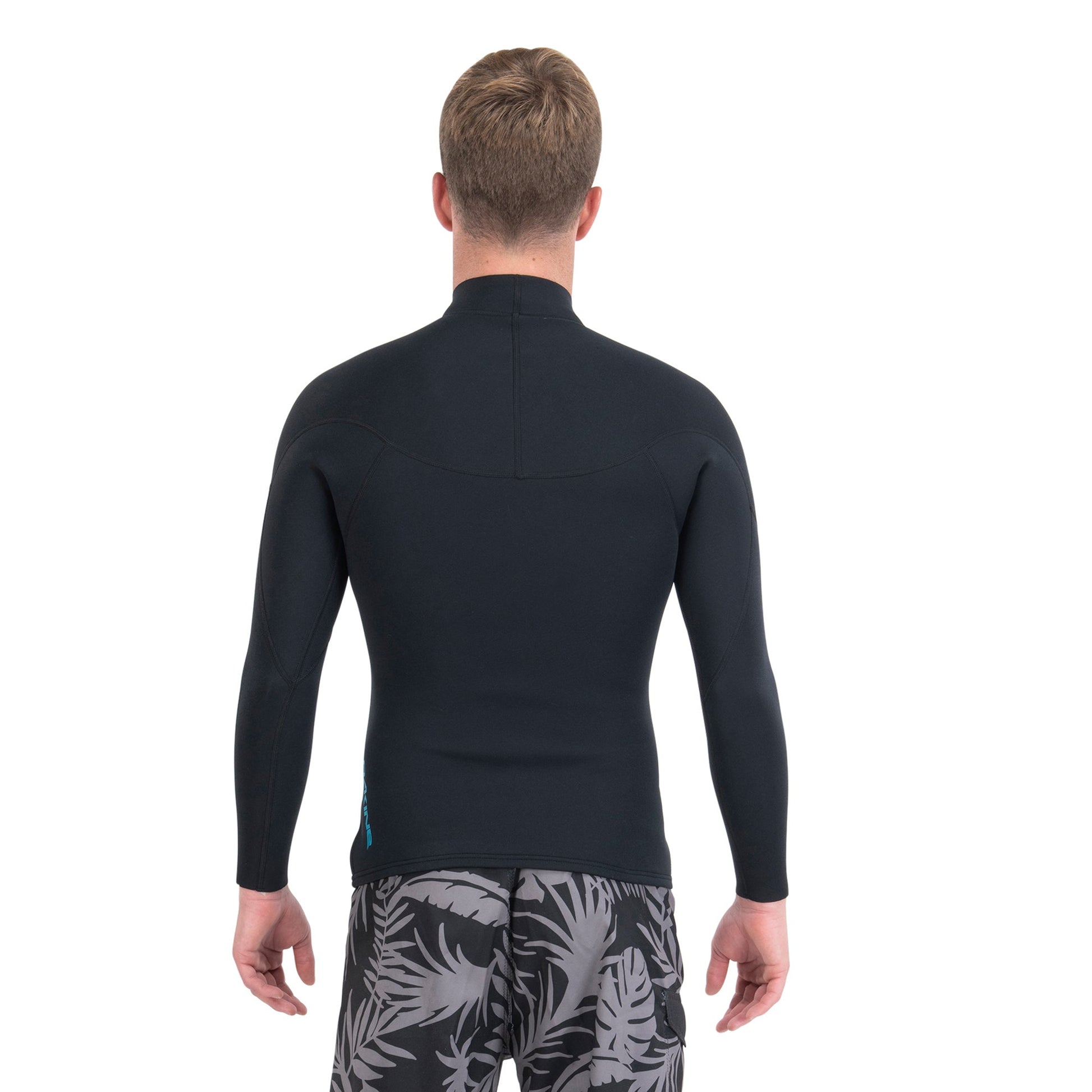 Made for the surfer who doesn’t want to miss a single wave due to overexposure to the elements, the men’s Quantum Jacket 2/1MM F/L gives the warmth and protection you need to stay in the water longer. New to our Quantum line, this jacket is constructed of high-quality neoprene to reduce windchill and protect from ultraviolet rays. Its close fit and 2-millimeter front panel help to minimize chafing on your stomach and ribs, while the 1-millimeter S-Type neoprene in the shoulders and other high-stretch areas allow maximum flexibility while paddling and performing maneuvers. The seams are flatlock stitched for extra strength and durability, and a boardshort connector loop keeps the jacket from riding up. The Quantum Jacket is everything you need to stay out all day long.