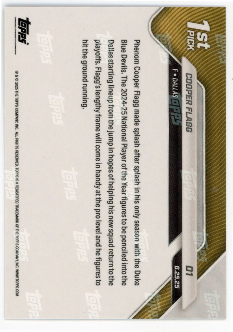 2025 Topps Now Cooper Flagg #D1 Blue Foil /75 Dallas Mavericks Rookie RC Basketball Card
