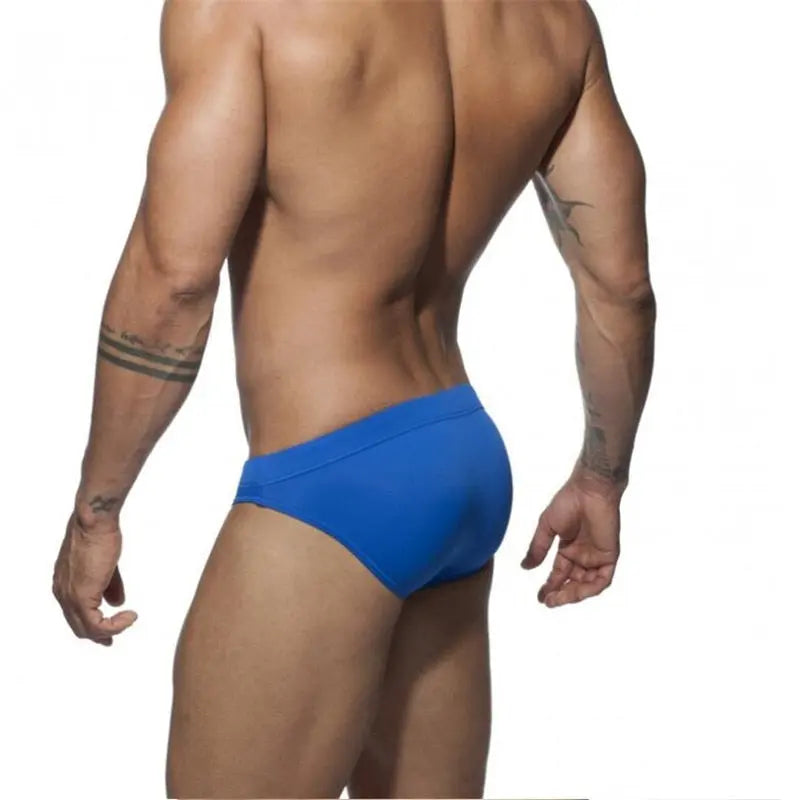Our most popular solid colors stand out wherever you wear them, and they're basic enough that it's not an attention seeker's dream come true, but rather a jock wearing a surf beach speedo that covers his junk during swim practice. These boosting swimming briefs have a drawstring waistband and a classic shape. Ideal for posing on the beach or in the pool.