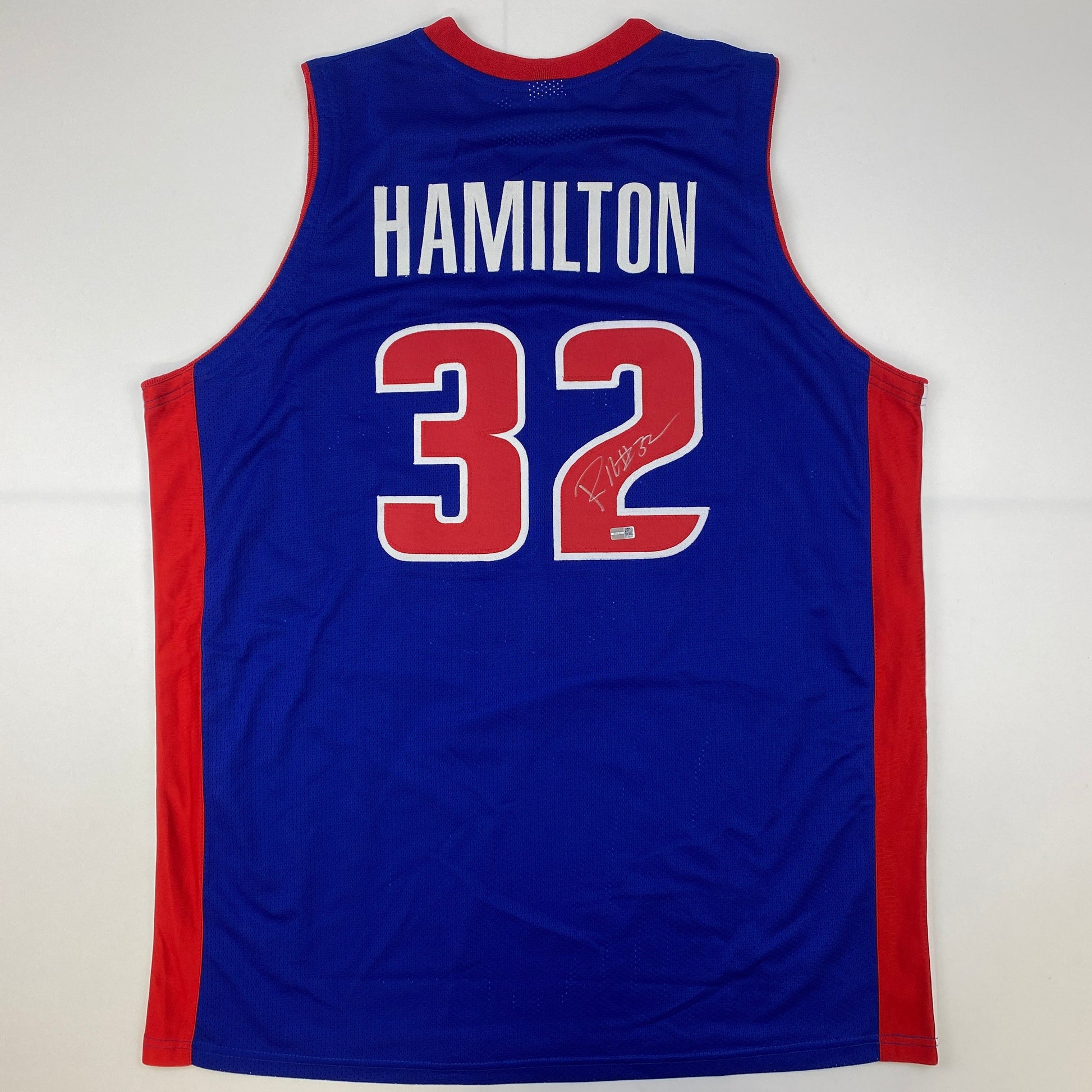 Autographed/Signed Richard Rip Hamilton Detroit Blue Basketball Jersey Steiner COA