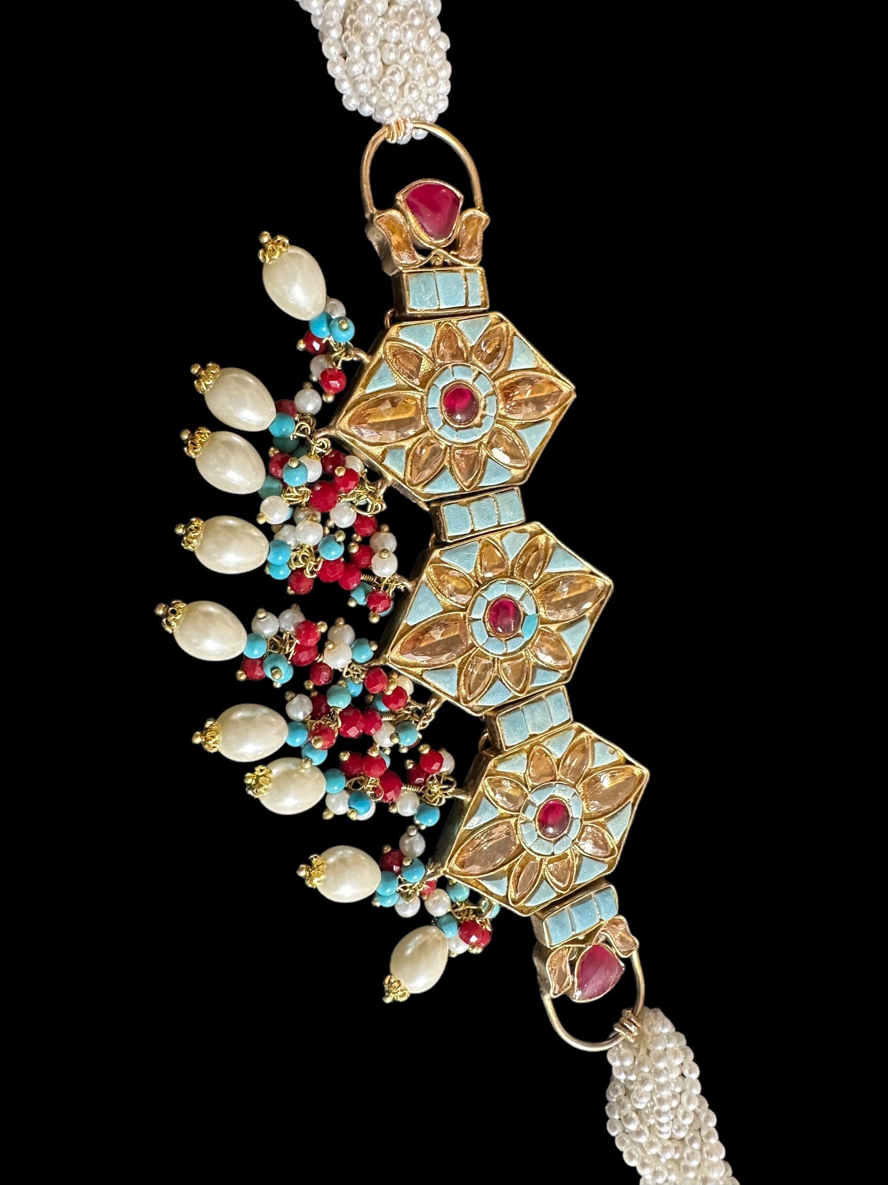 C527 Zaria turquoise ruby choker with earrings ( READY TO SHIP )