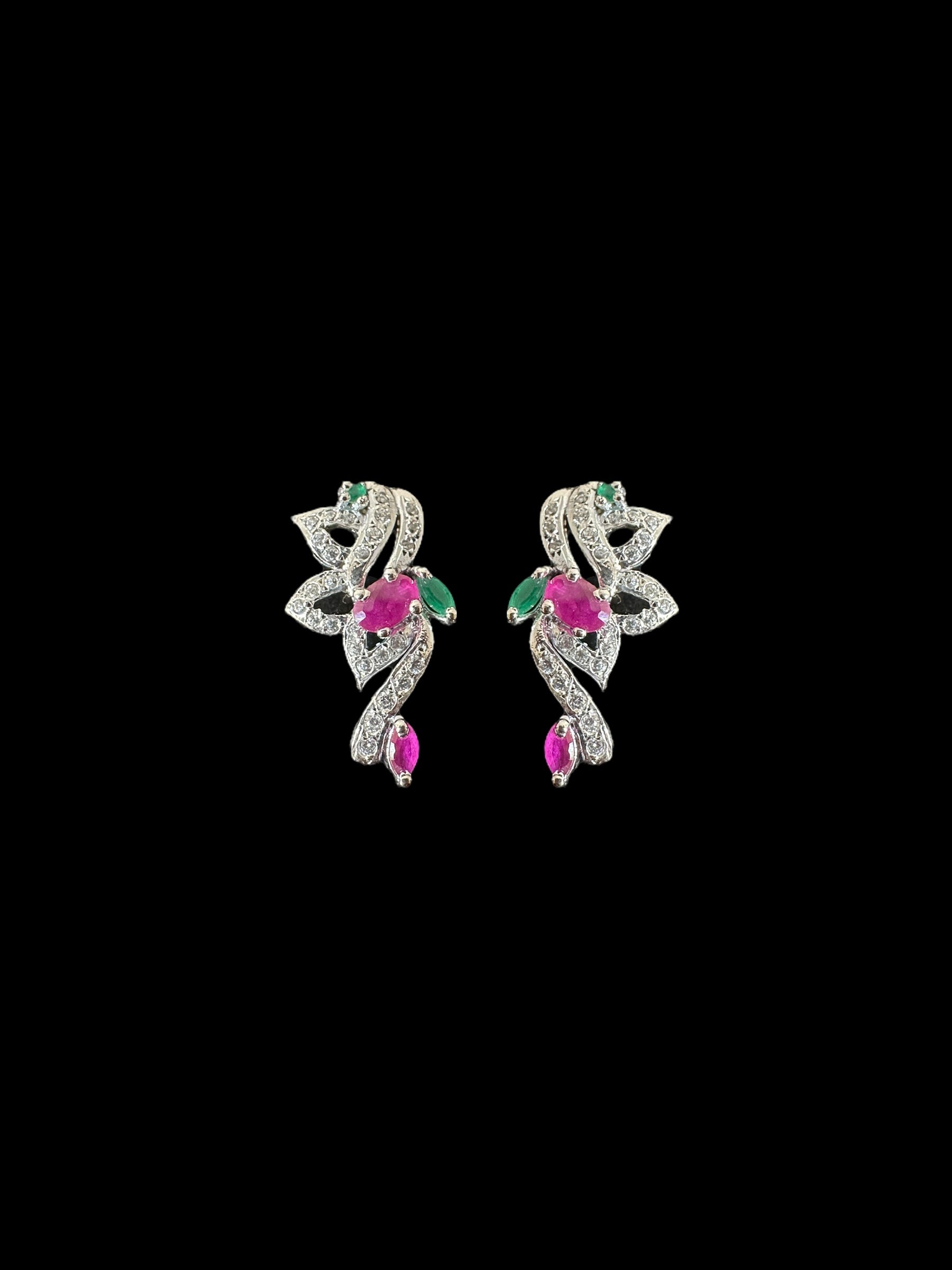 Cz pendant - silver plated with red green stones ( READY TO SHIP )