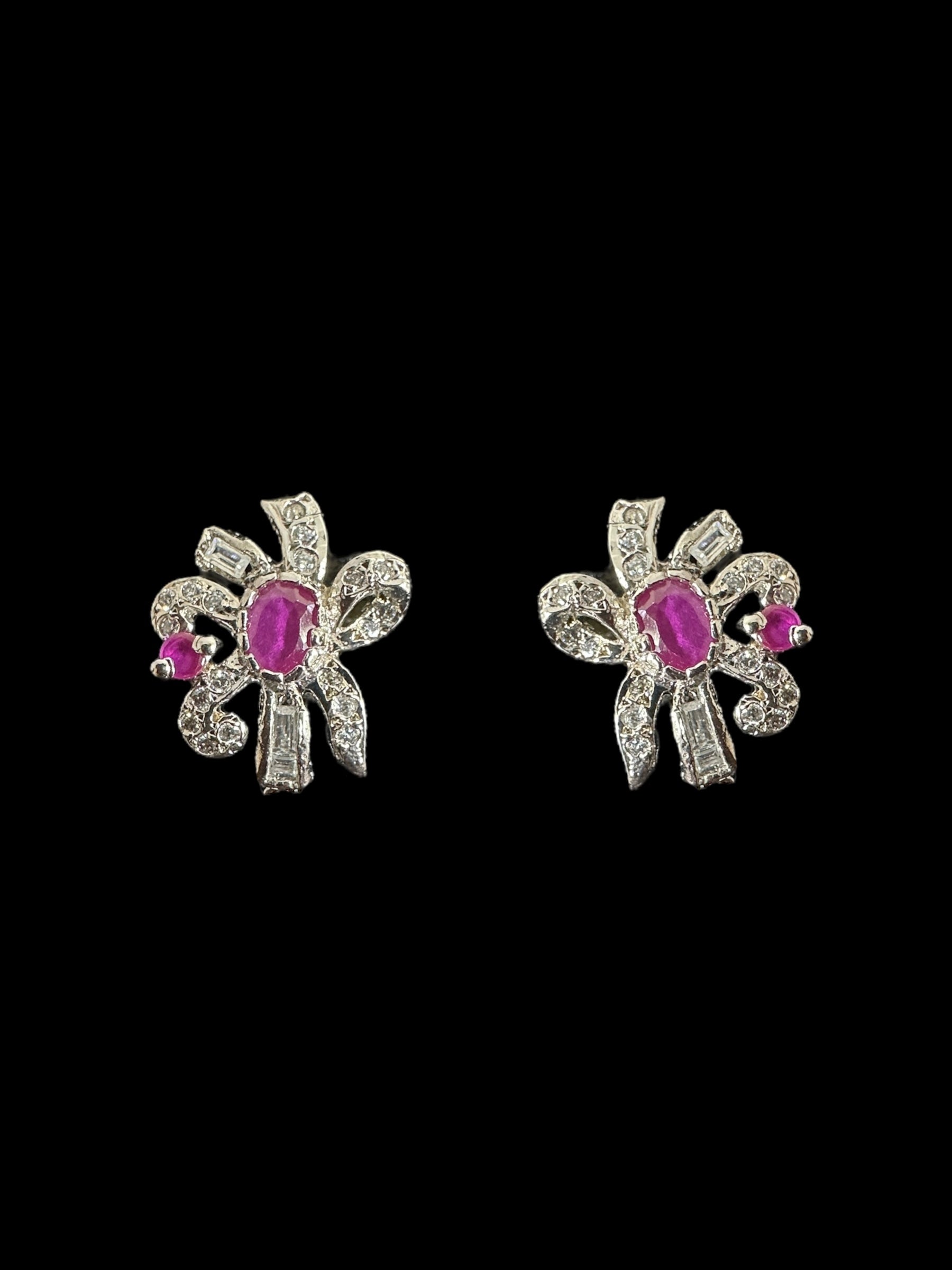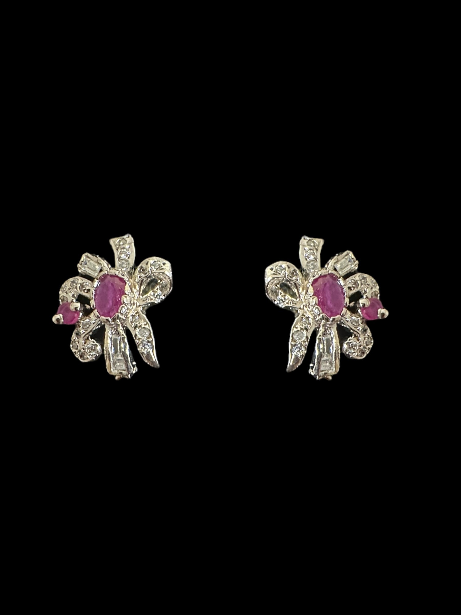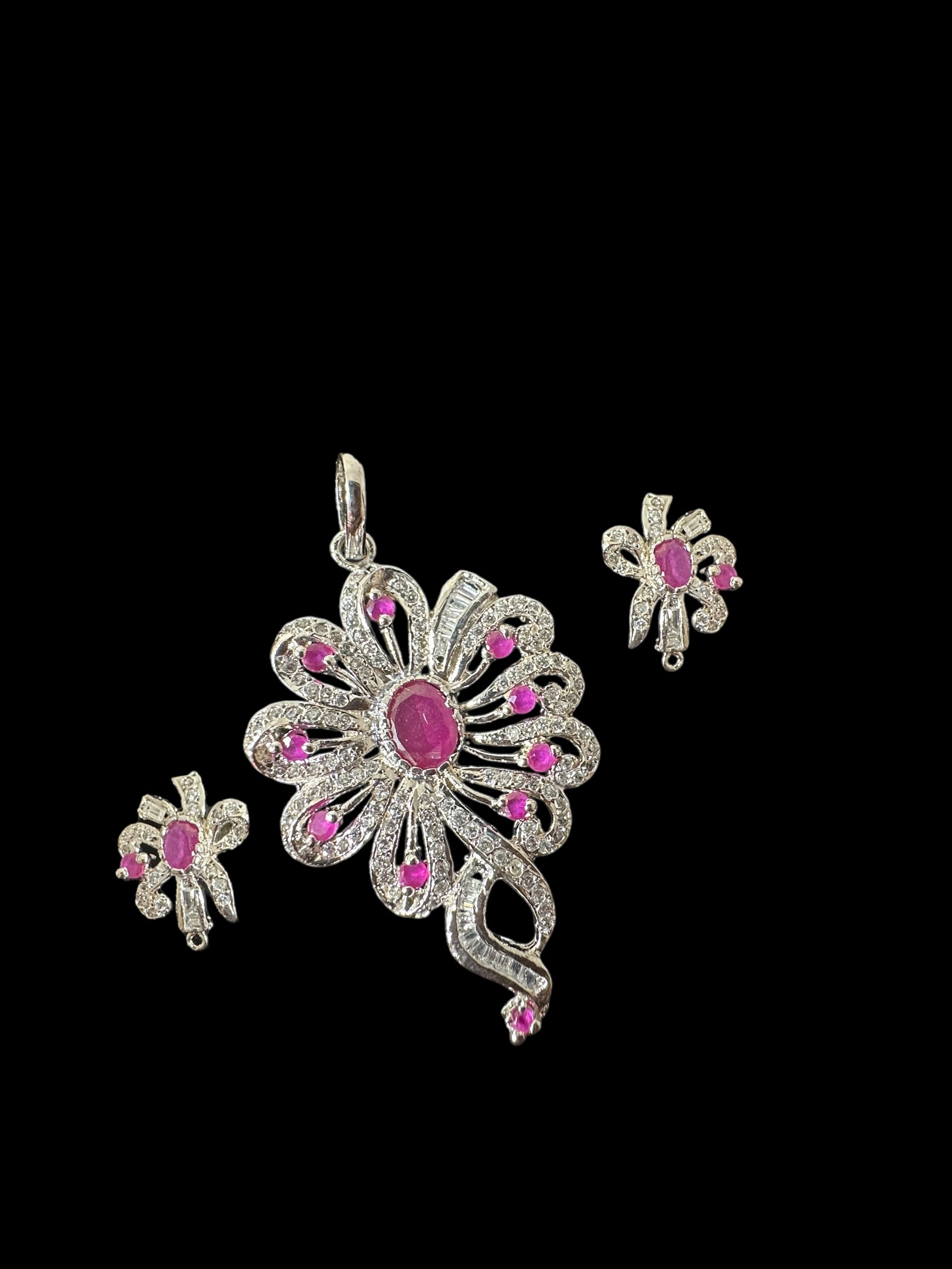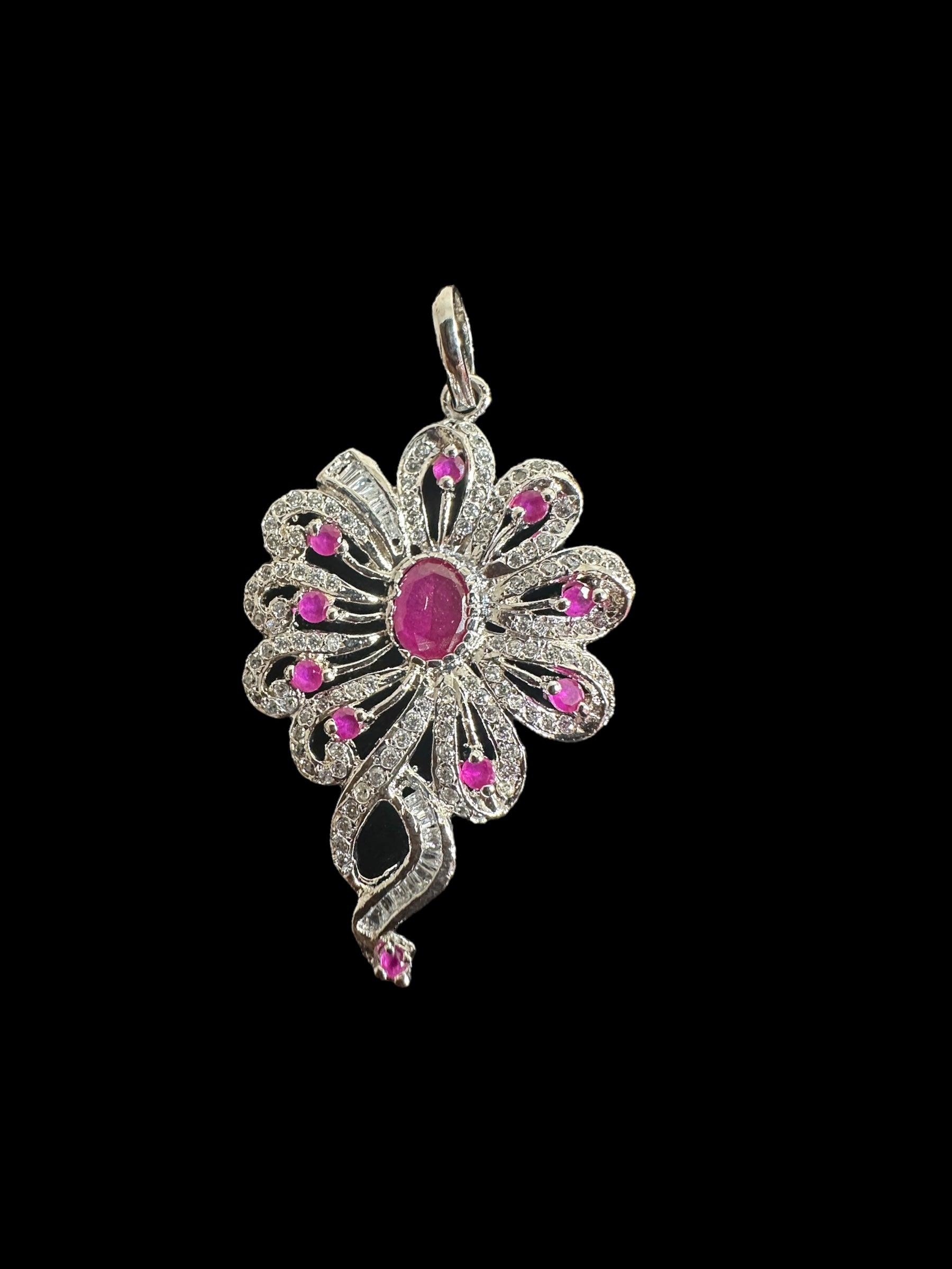 Cz pendant - silver plated with red / semi precious ruby stones ( READY TO SHIP )