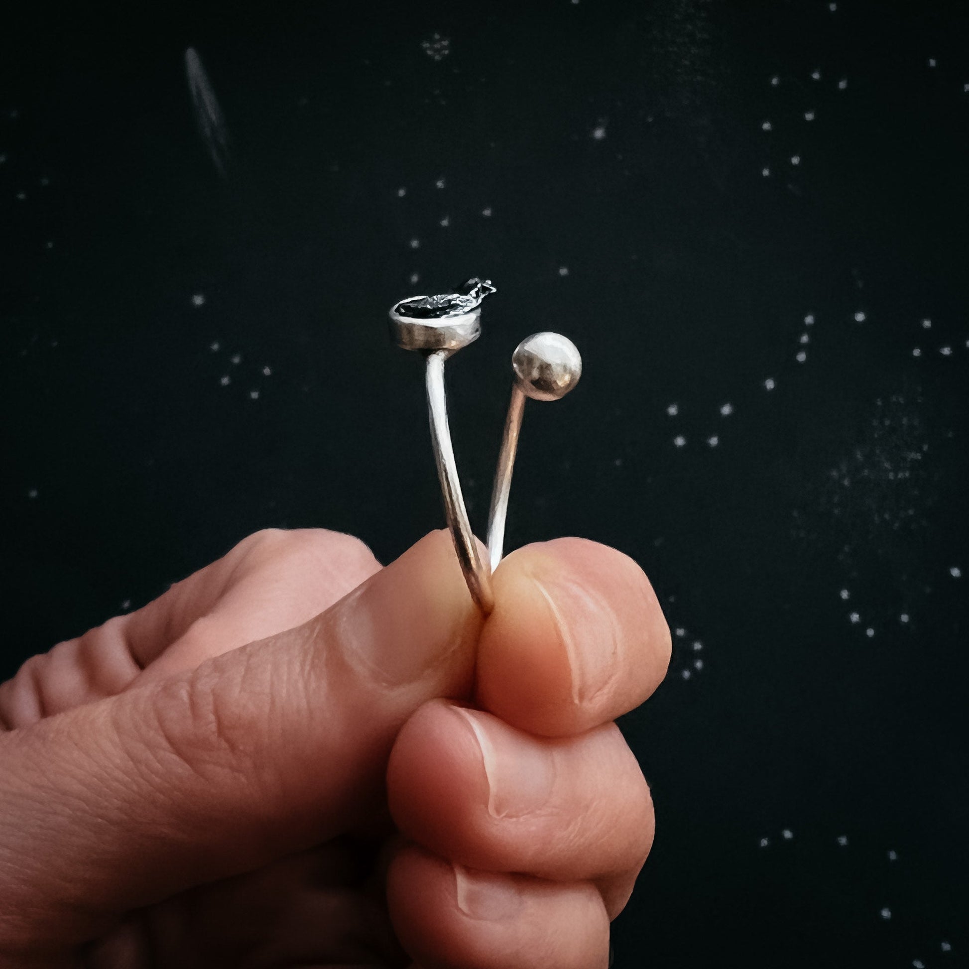 A beautiful chunk of raw other-worldly meteorite set in oval bezel on a thin adjustable wrap band finished off with a silver bead. A unique piece of outer space jewelry - a great gift for the scientist or stargazer in your life!