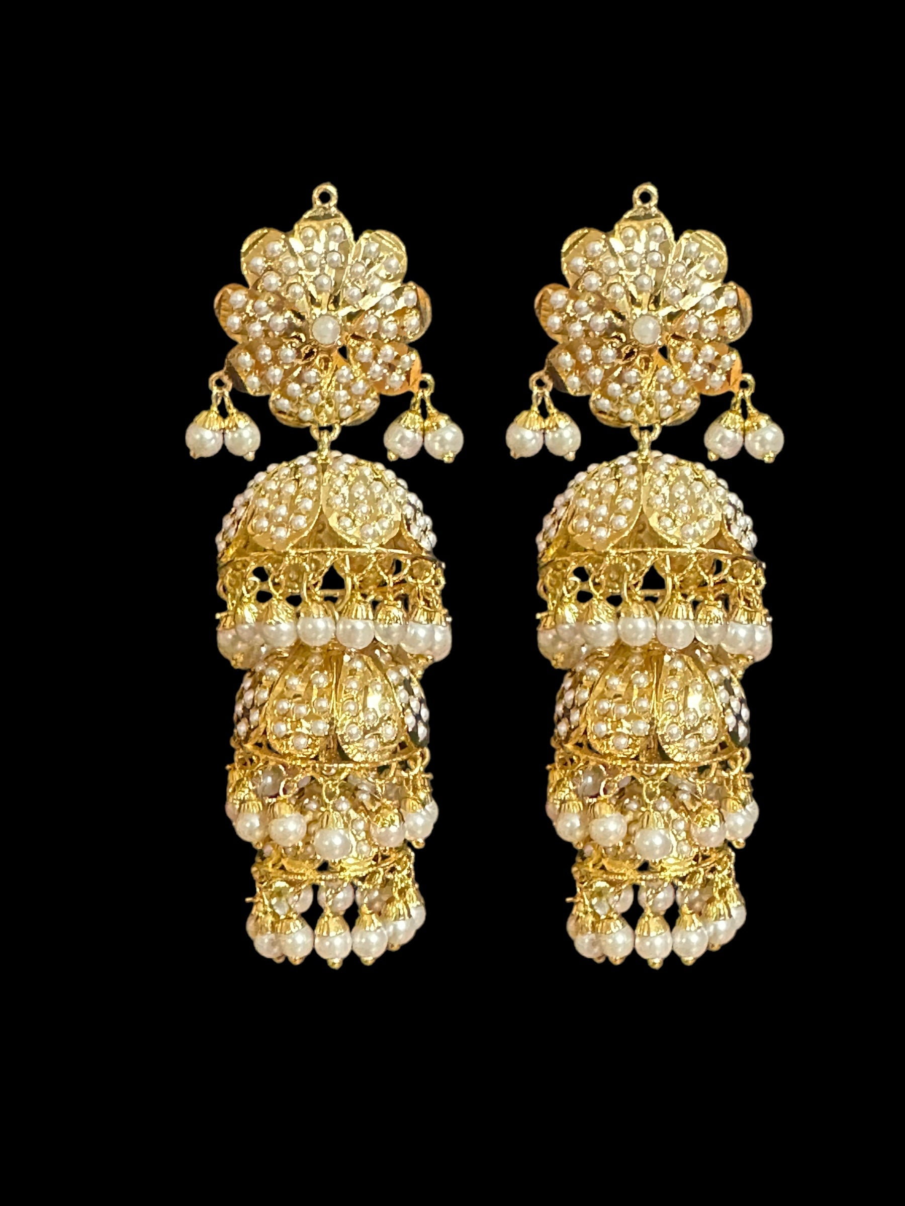 DER506 Mya gold plated jhumka earrings - pearls ( SHIPS IN 4 WEEKS )