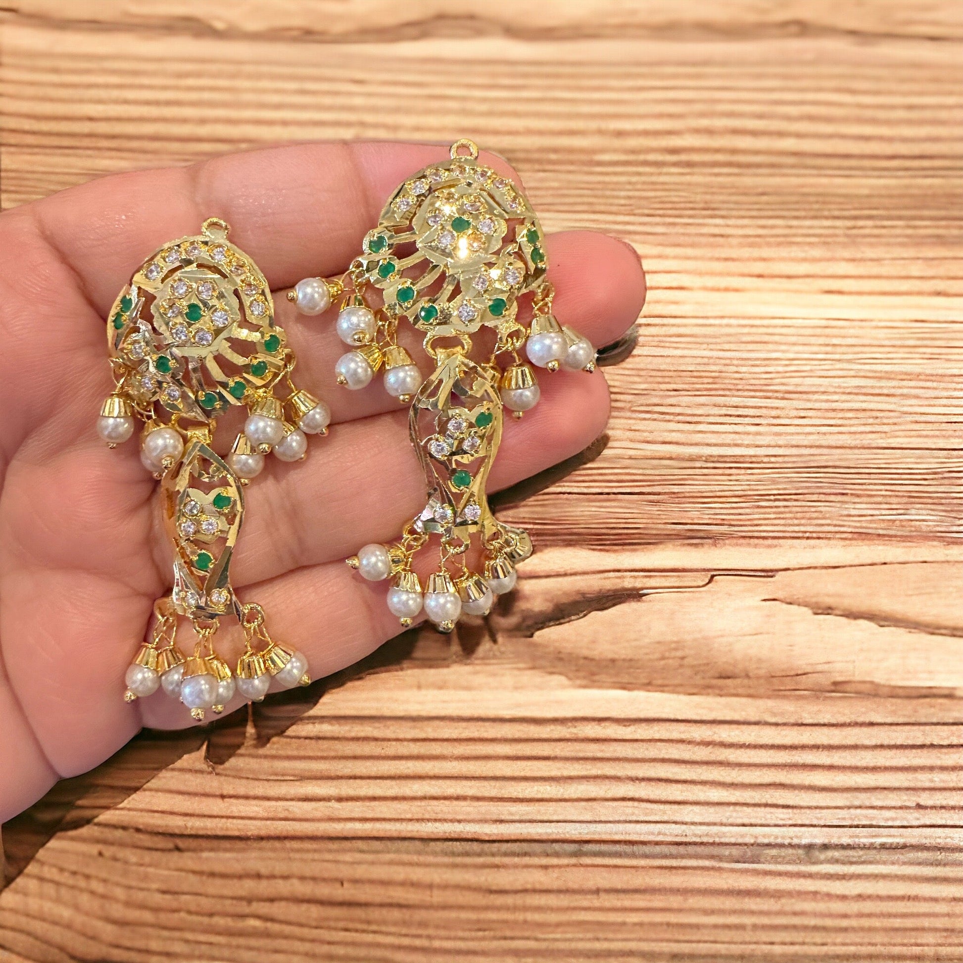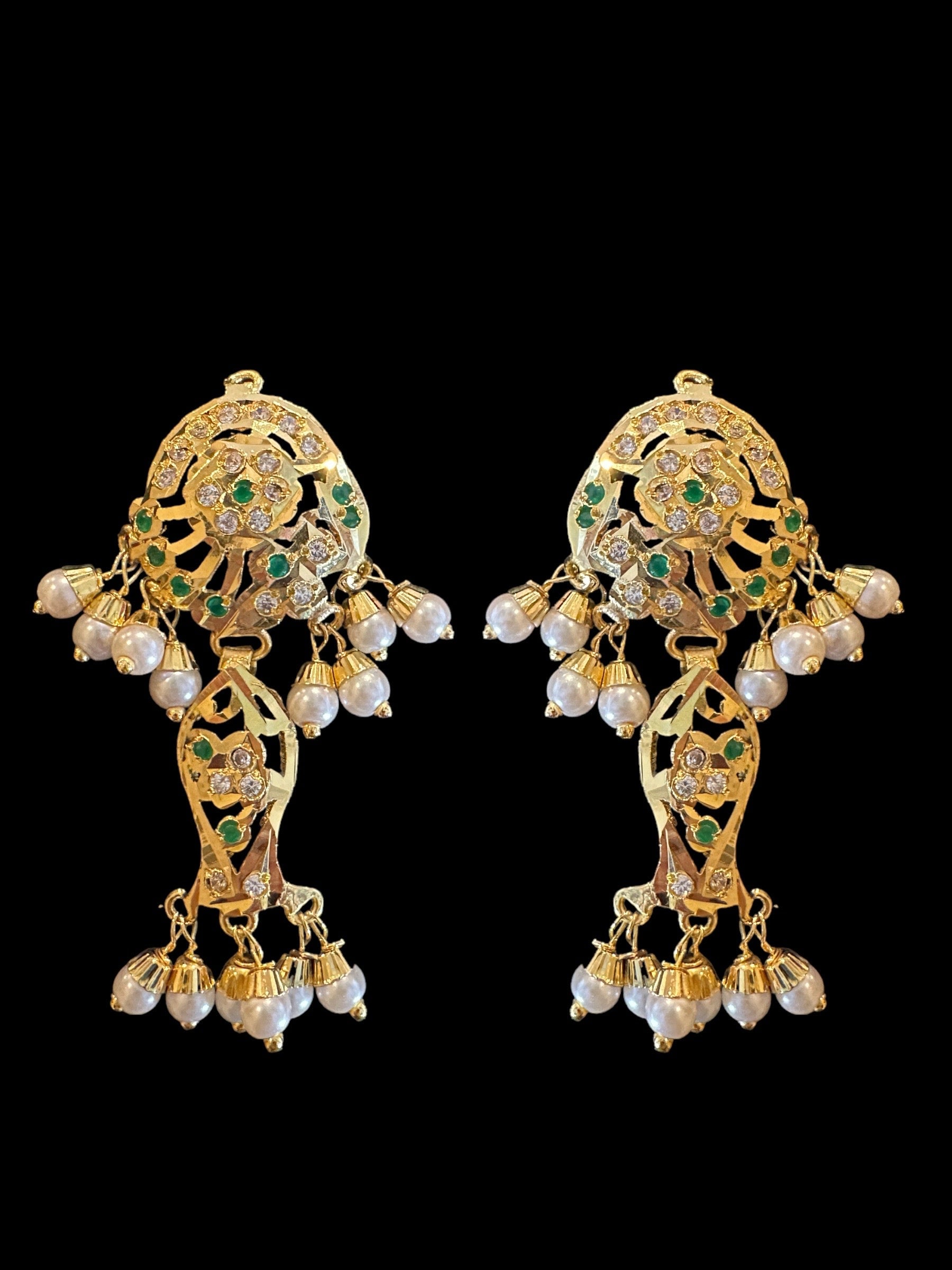 DER585 jadau earrings in fresh water pearls - green ( READY TO SHIP )