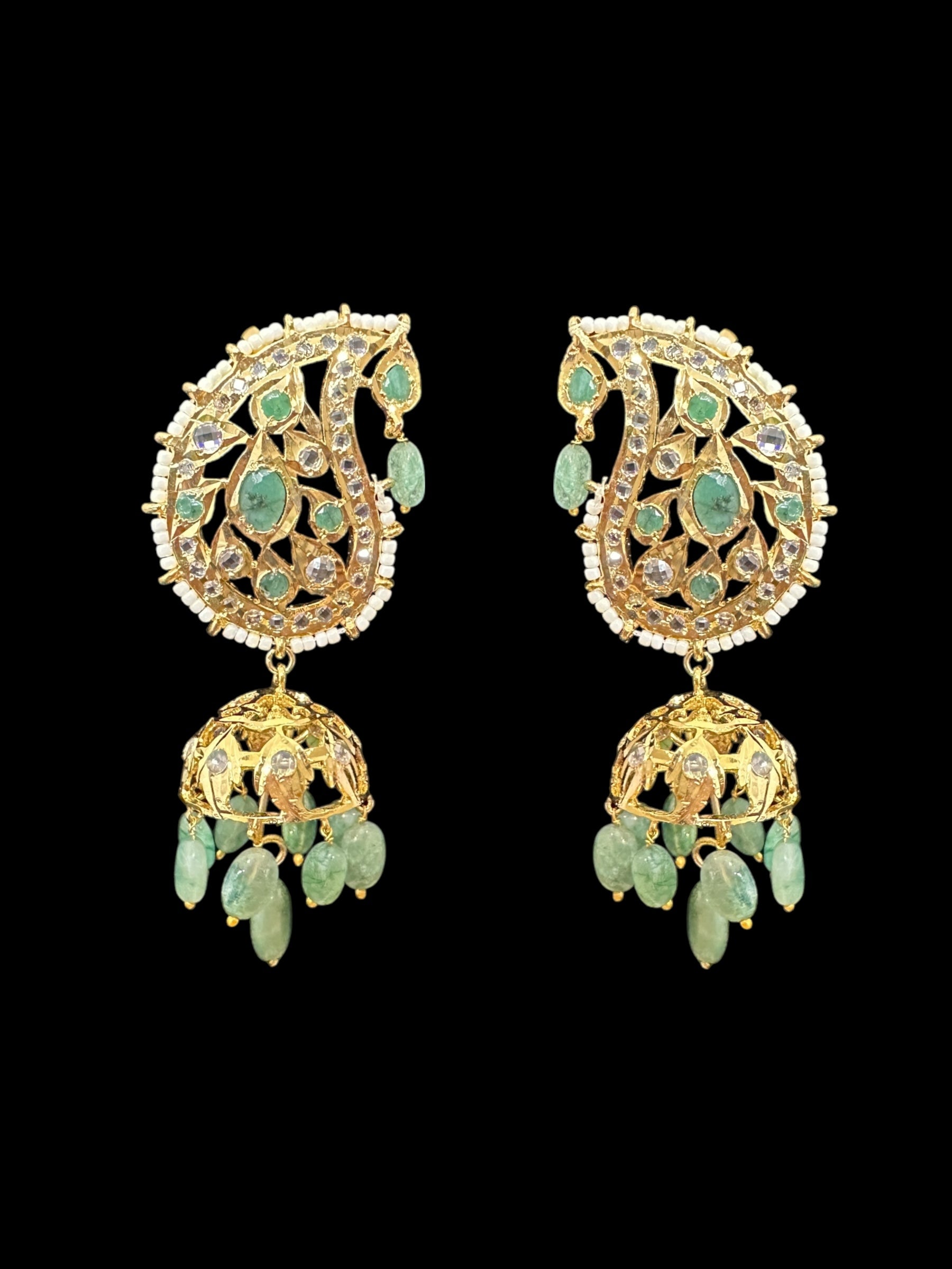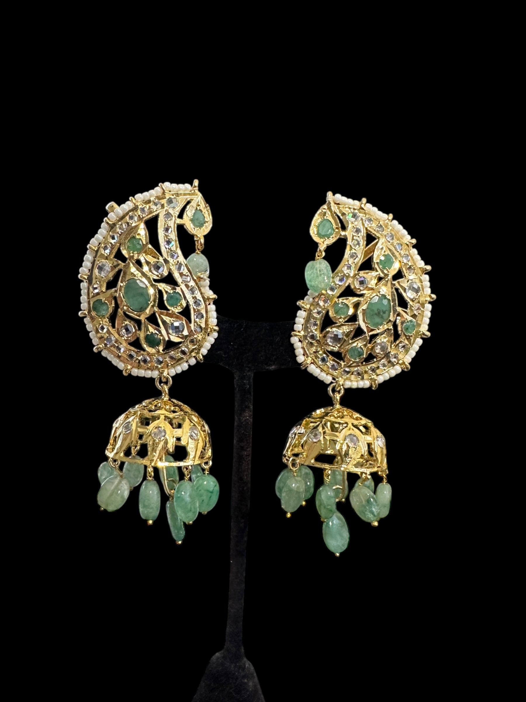 DER726 Kaan phool jhumka earrings in emeralds ( READY TO SHIP )