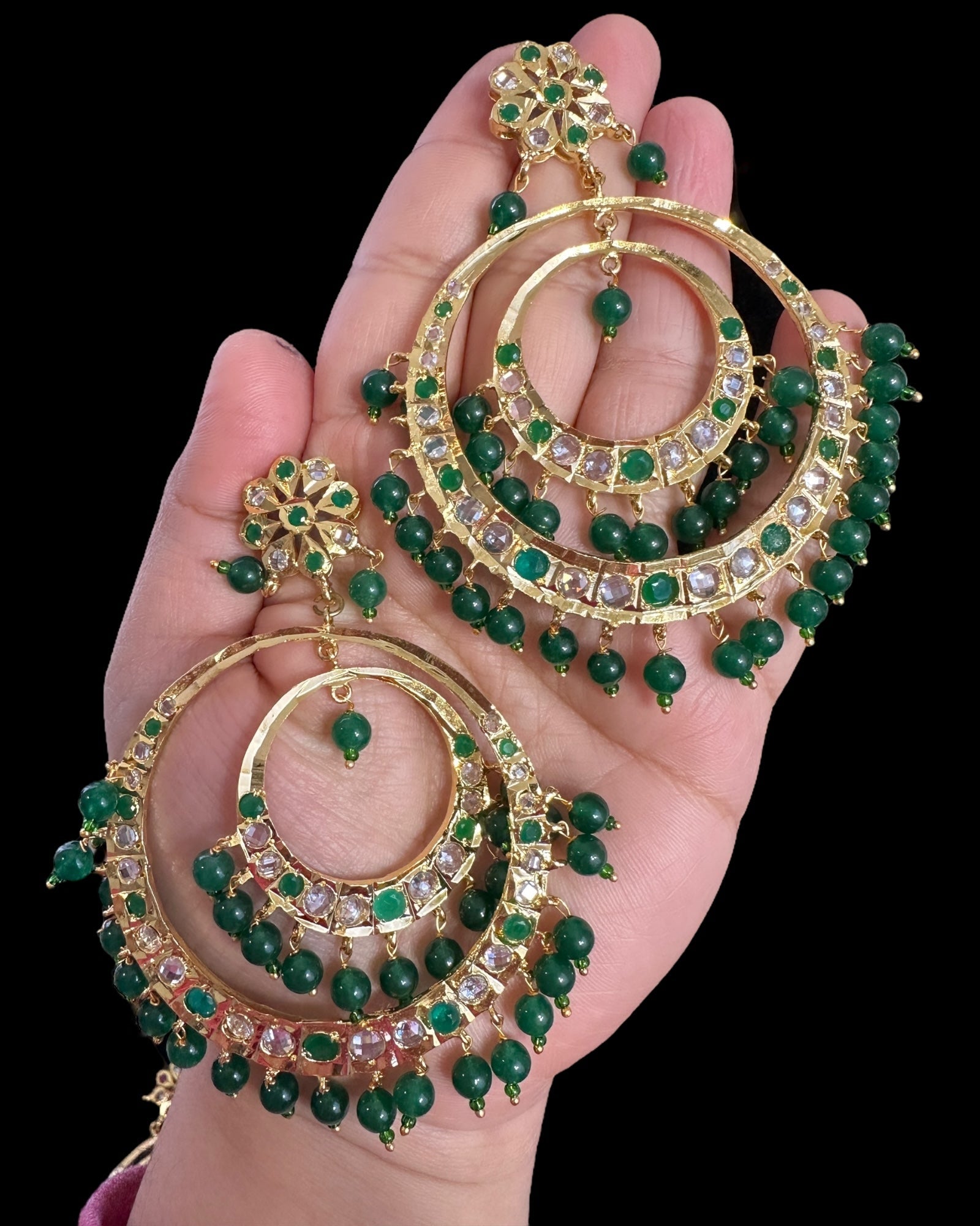 DER771 USHA overzied chandbali earrings - Green (READY TO SHIP )