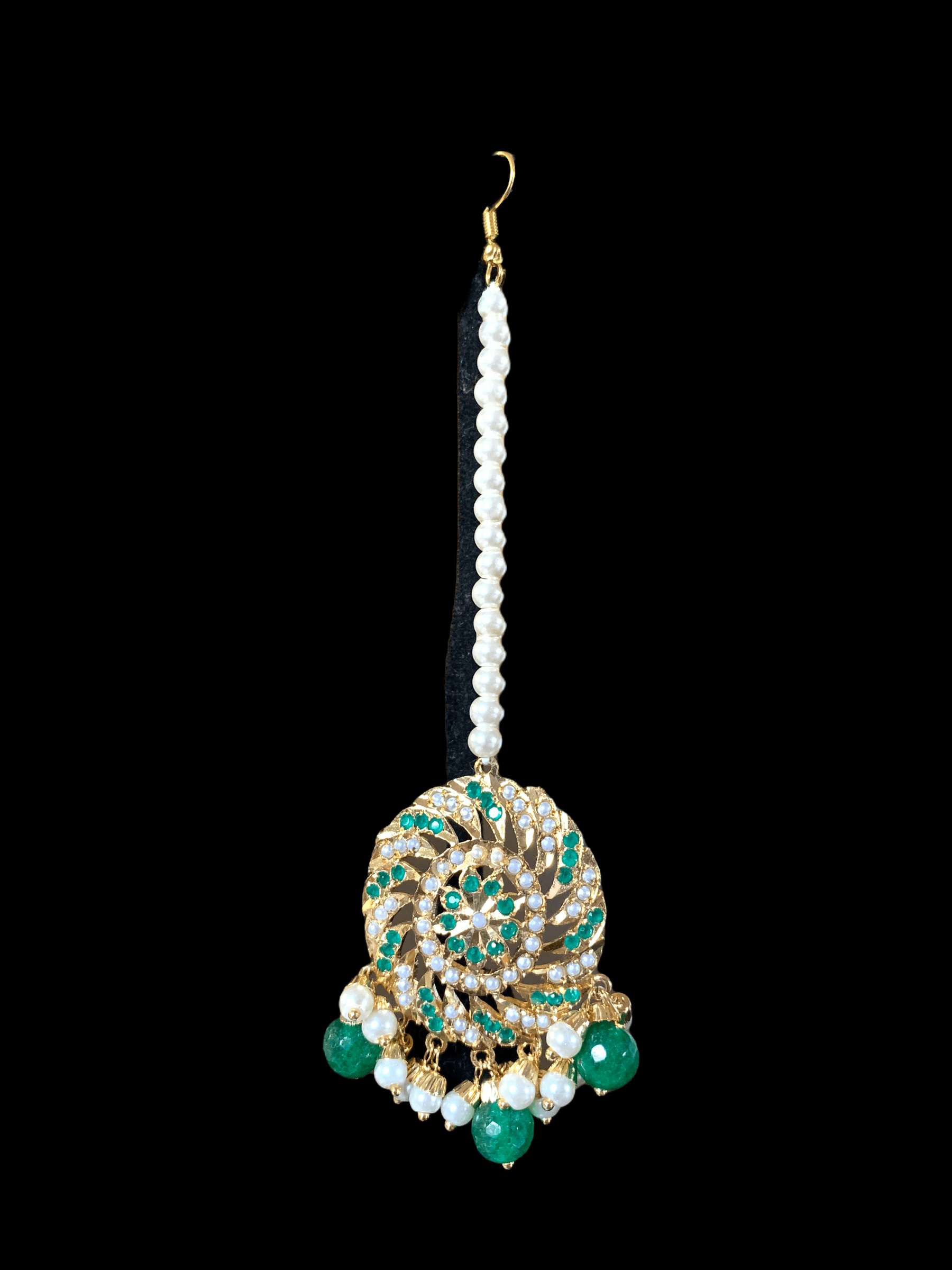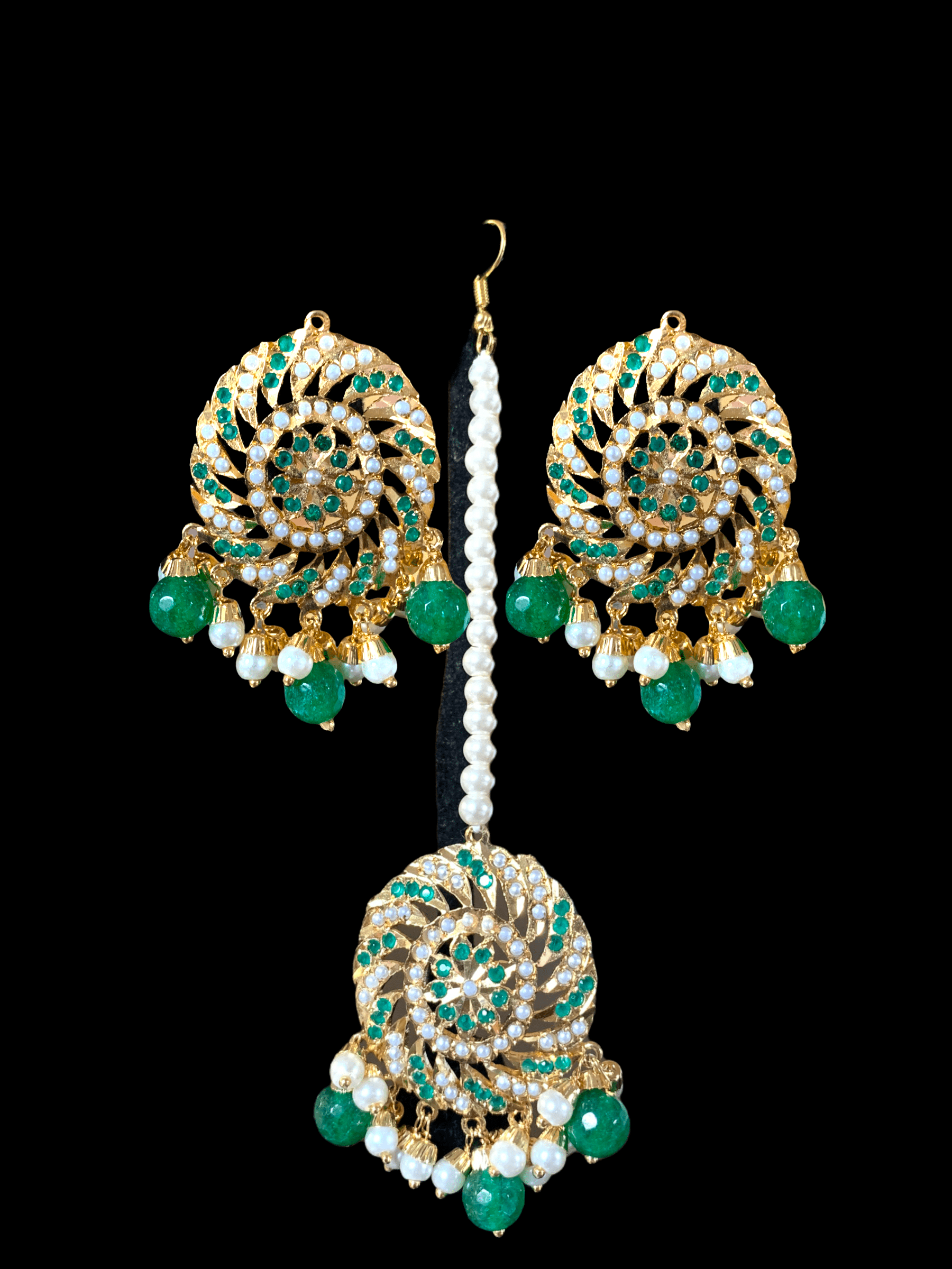 DJET17 Raabya punjabi Jadau earrings tika(emerald ) ( READY TO SHIP)