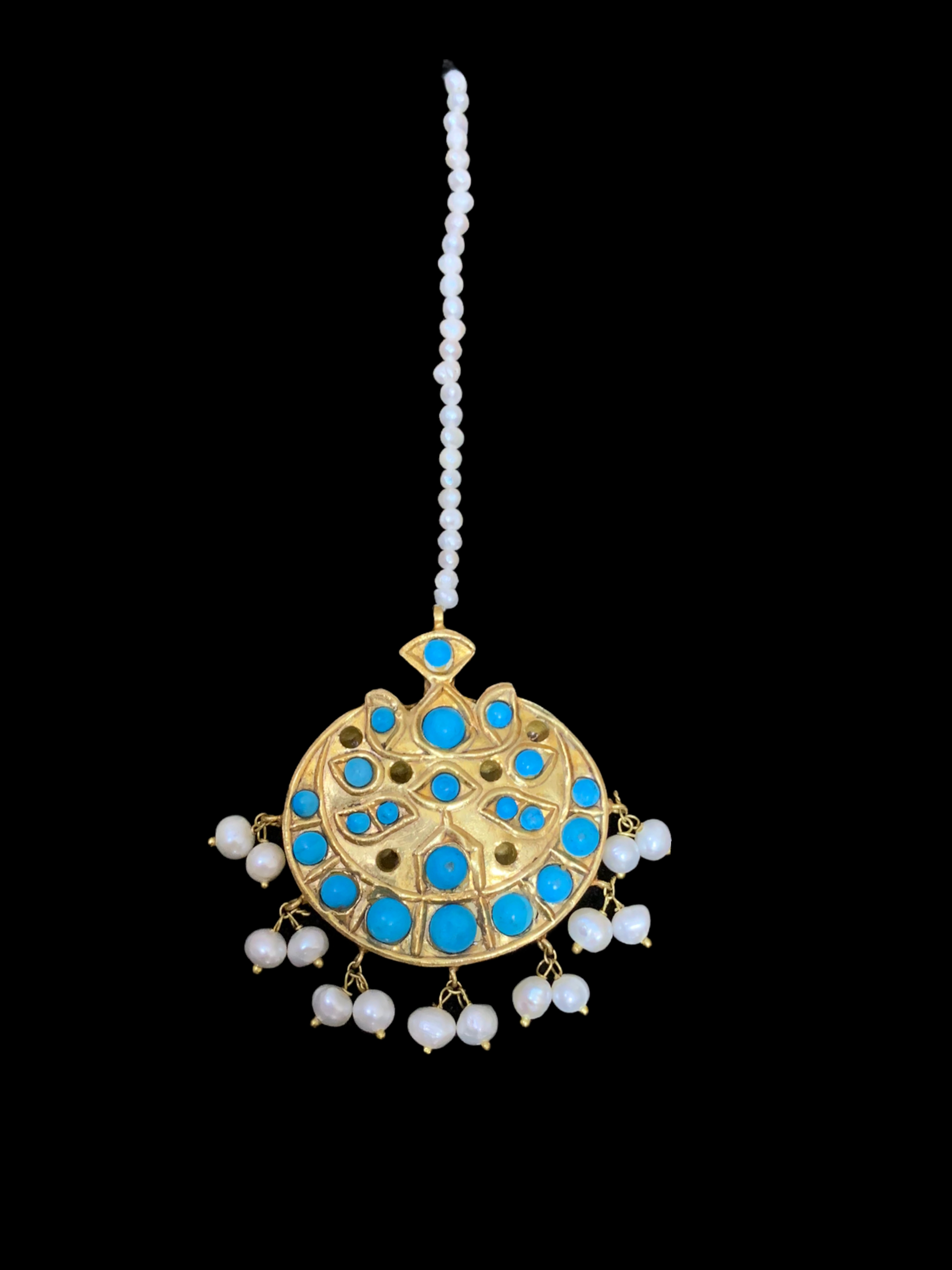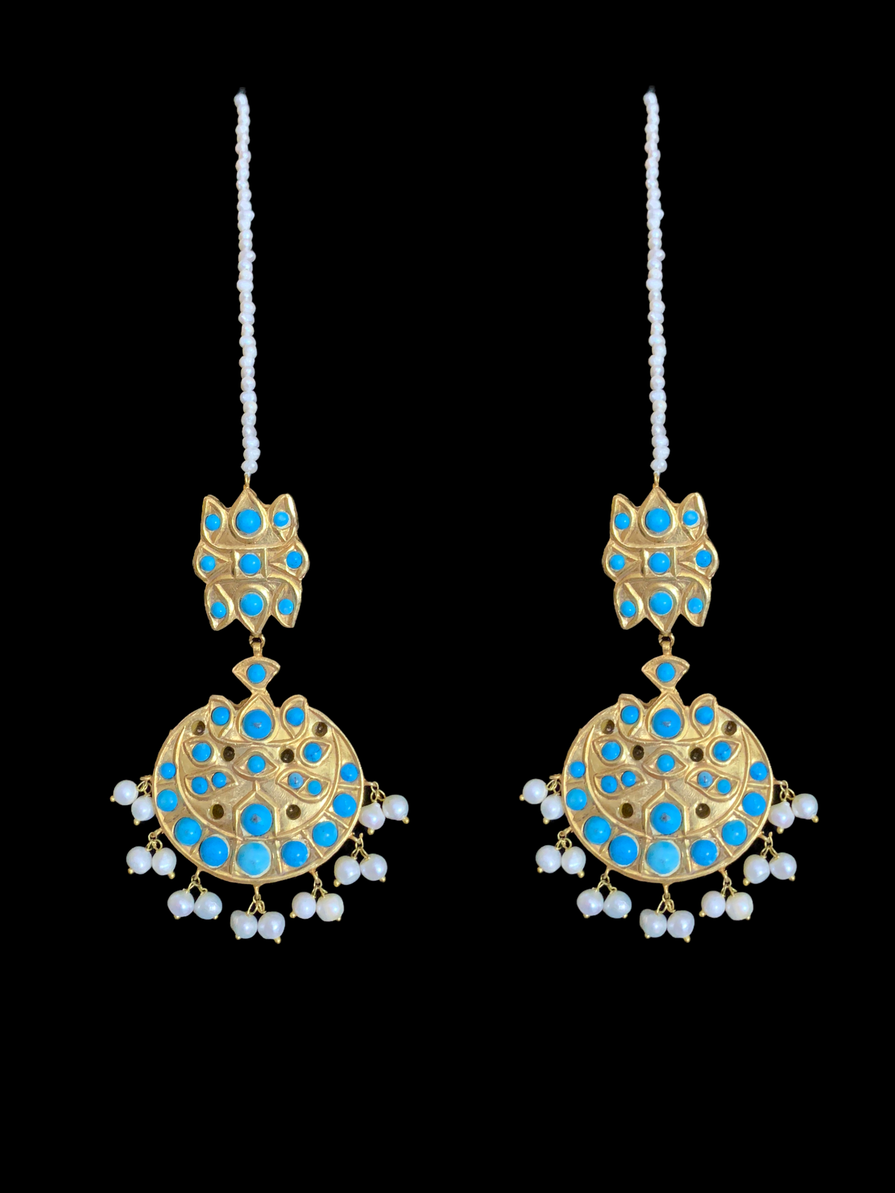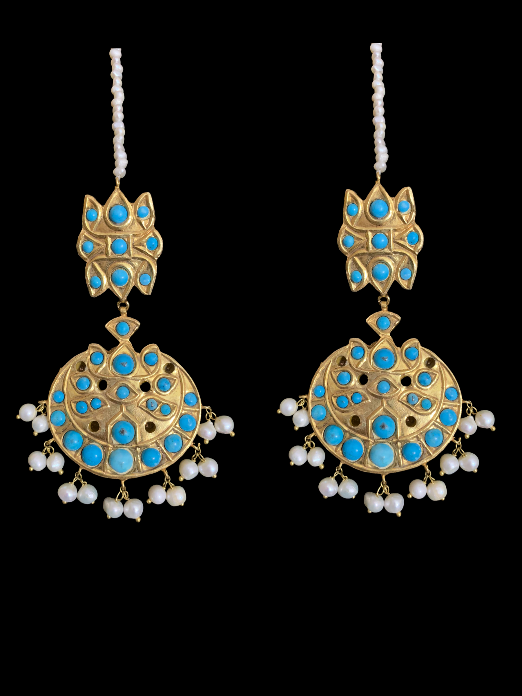 DJET30 Reza gold plated turquoise with fresh water pearls earrings tika ( READY TO SHIP)