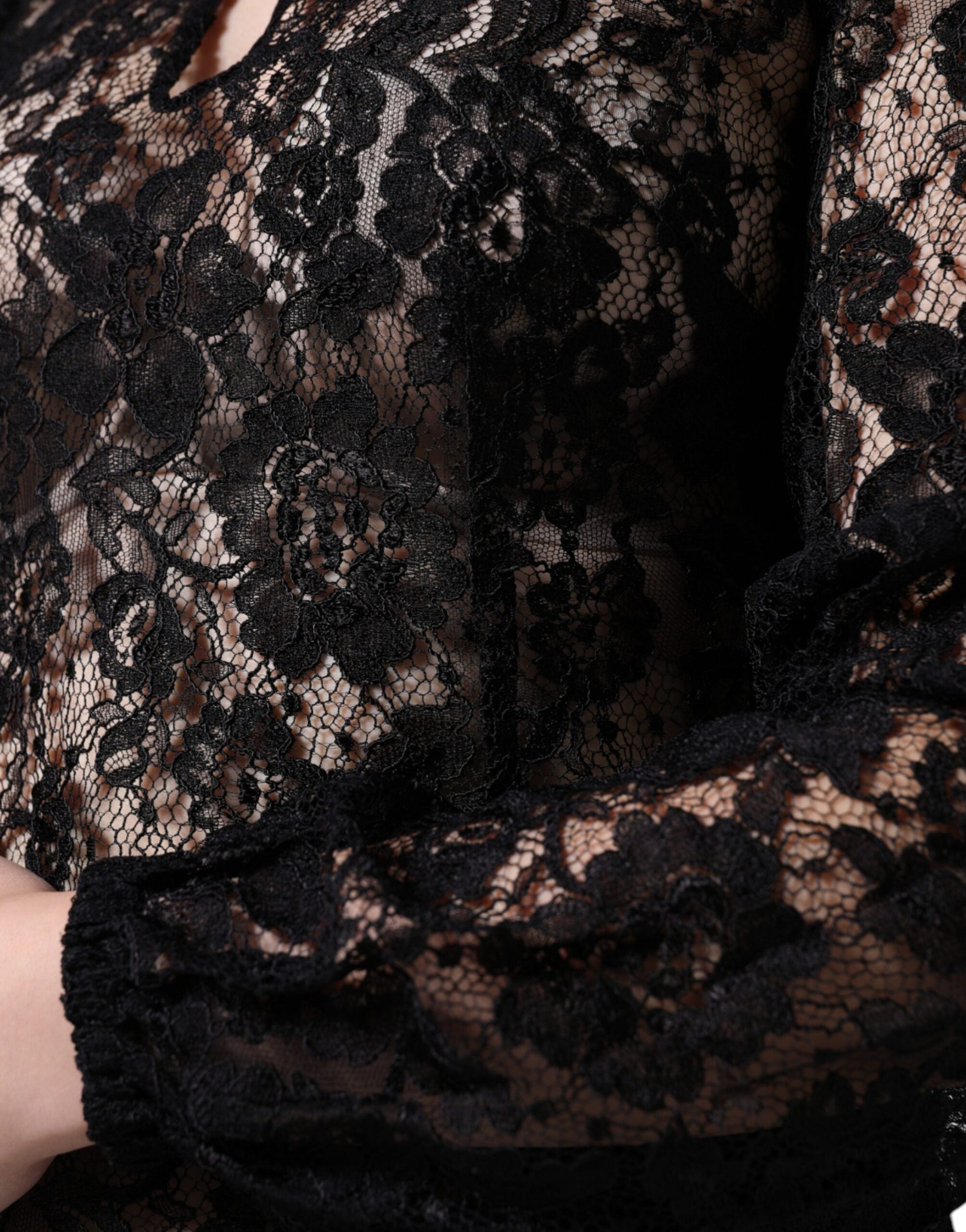 Dolce & Gabbana Black Floral Lace See Through Long Sleeve Top