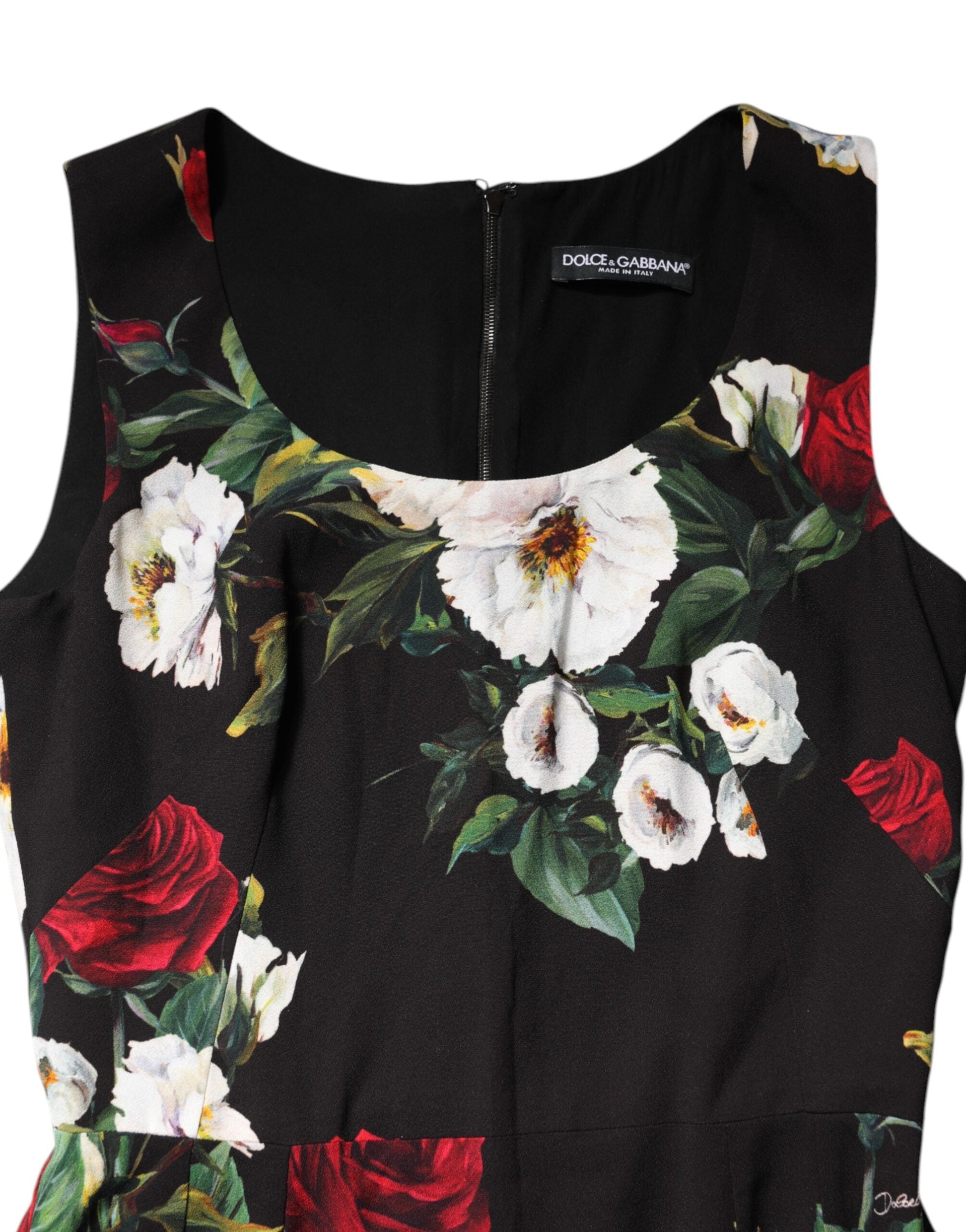 Dolce & Gabbana Black Floral Print Sleeveless Sheath Dress