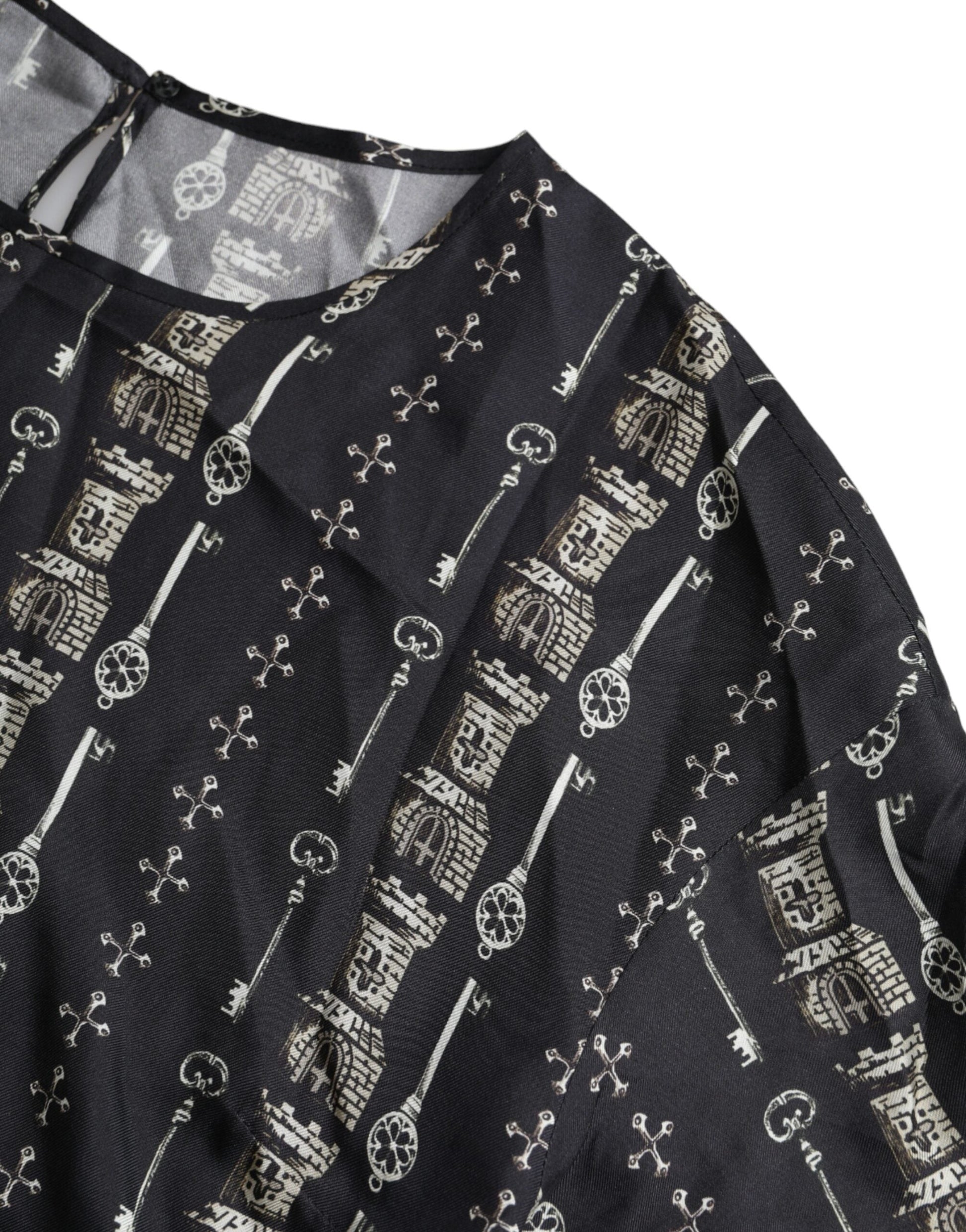 Dolce & Gabbana Black Key Castle Print Silk Blouse T-shirt