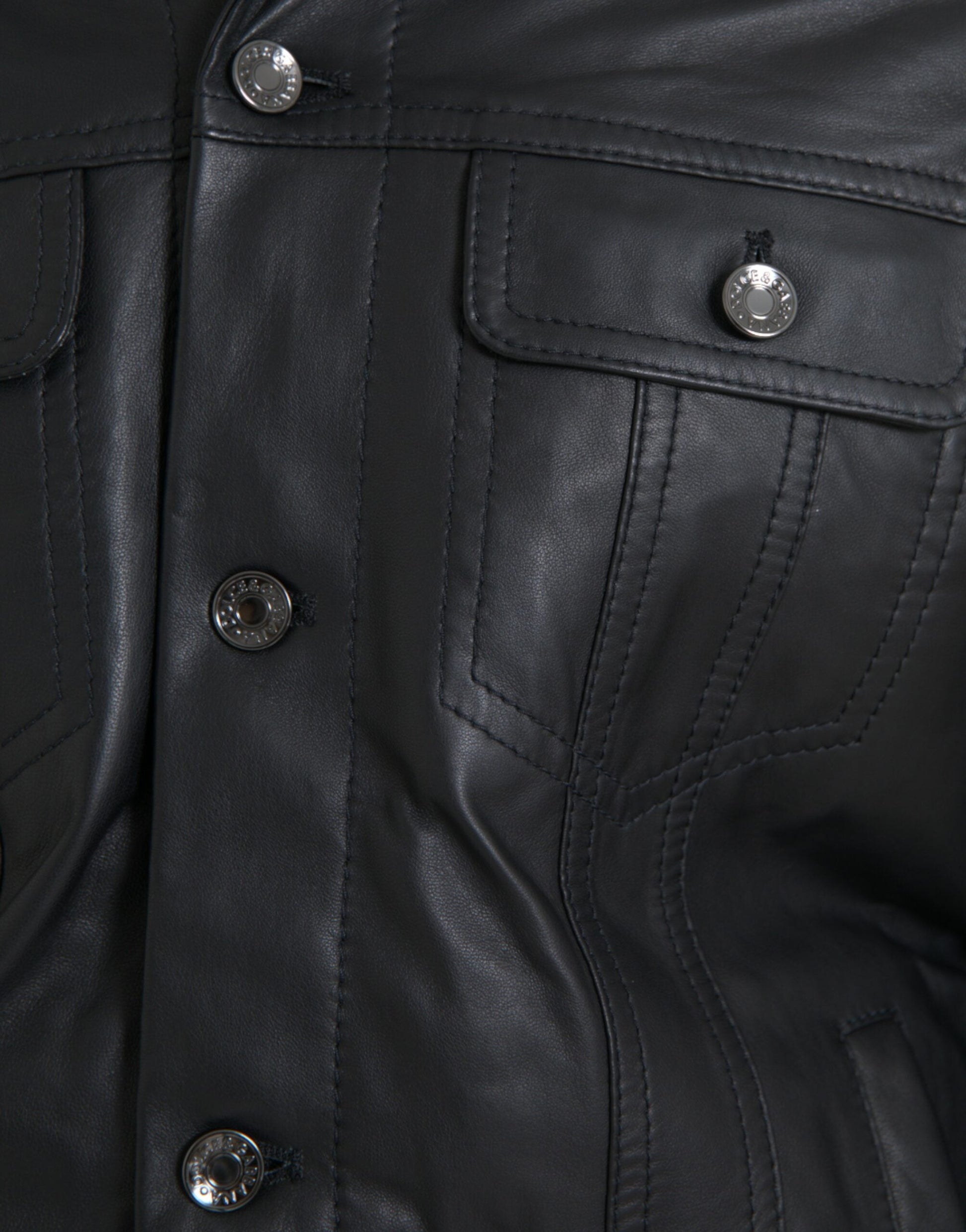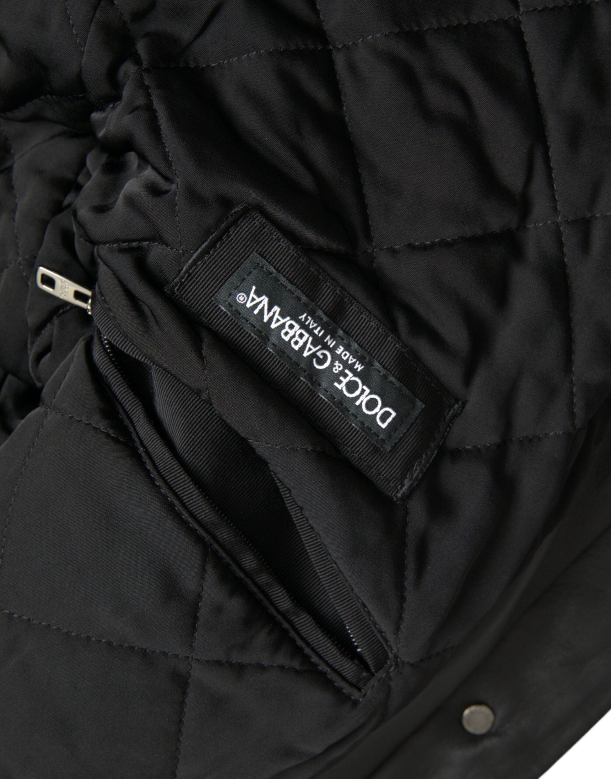 Dolce & Gabbana Black Leather Fur Collar Biker Coat Jacket