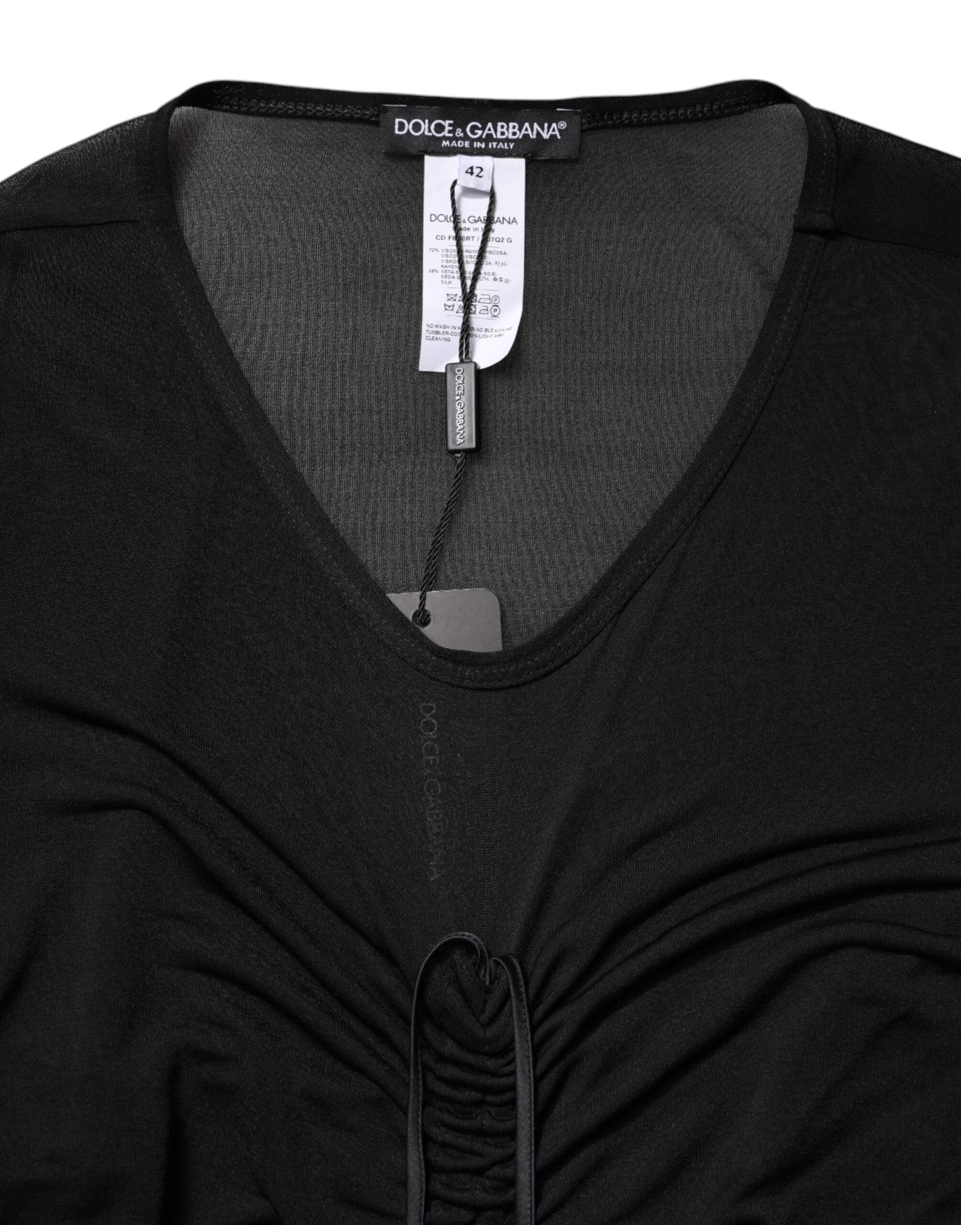 Dolce & Gabbana Black Mesh Trim Bodycon Long Sheath Dress