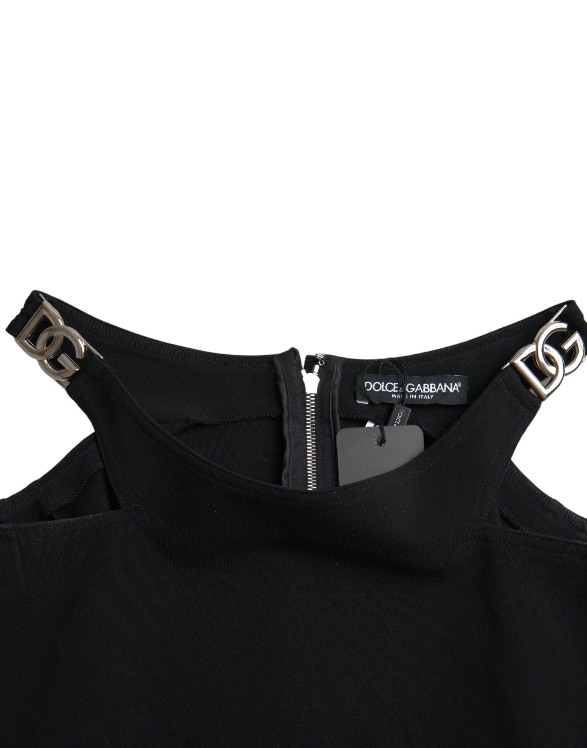 Dolce & Gabbana Black Sleeveless Round Neck Cropped Tank Top