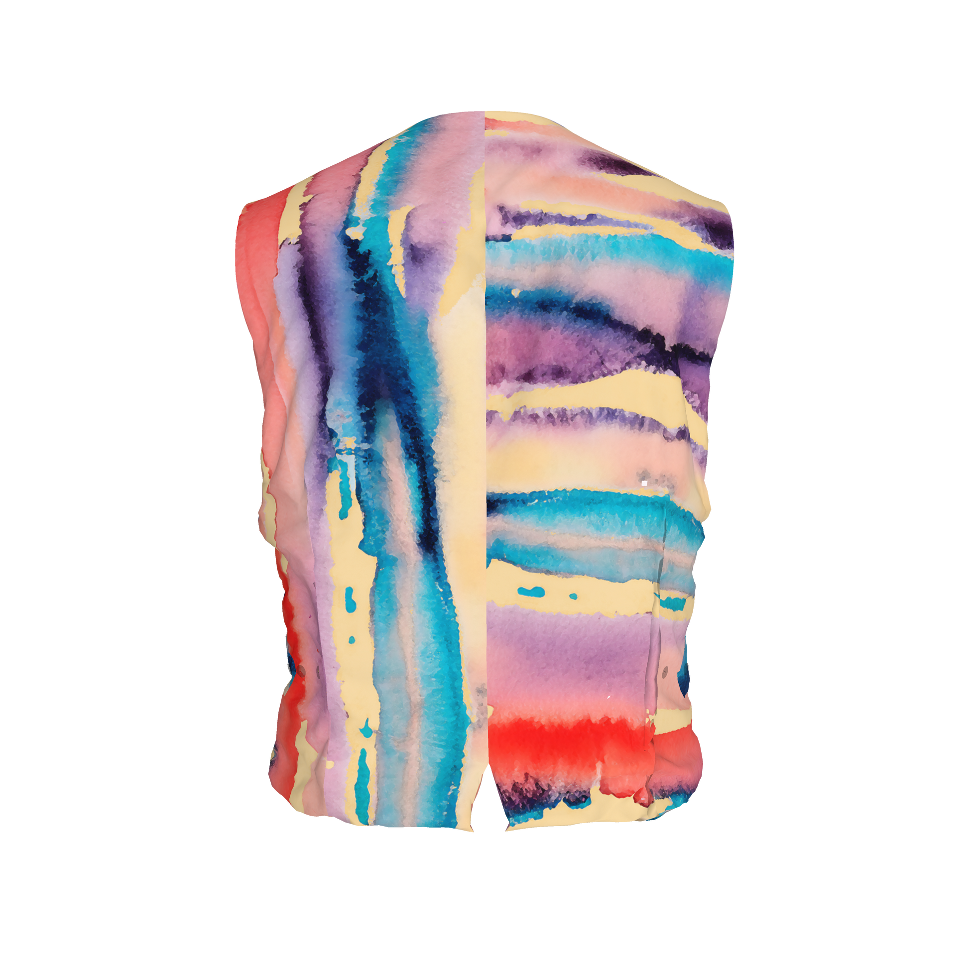 The vibrant watercolor drip paint pattern adds a splash of creativity, making it the perfect statement piece for any wardrobe. Completed with fine hardware, including expertly crafted buttons and subtle details, this vest elevates your look with its sleek and modern slim cut.