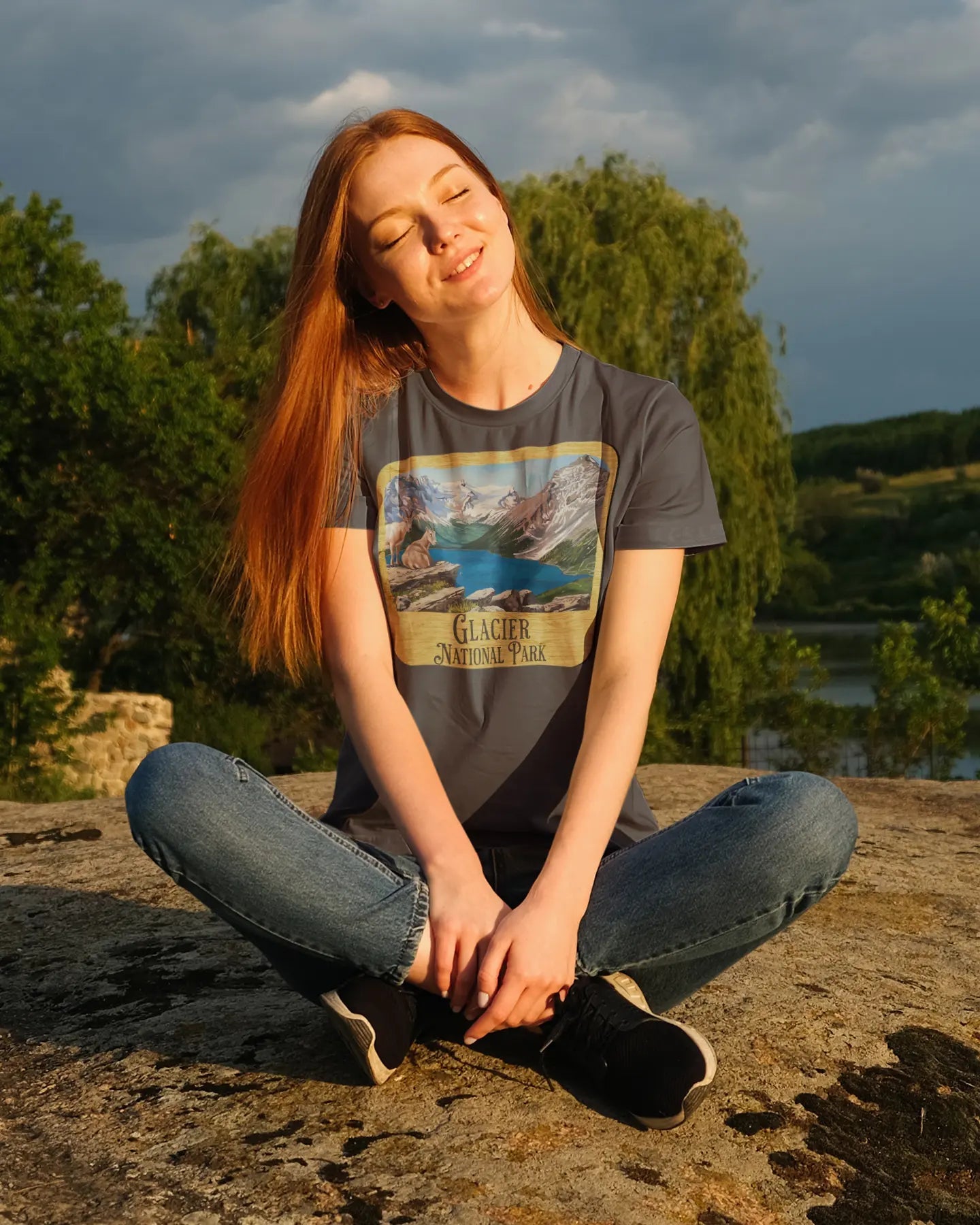 Glacier National Park Unisex Fit Short Sleeve T-Shirt Wood Sign