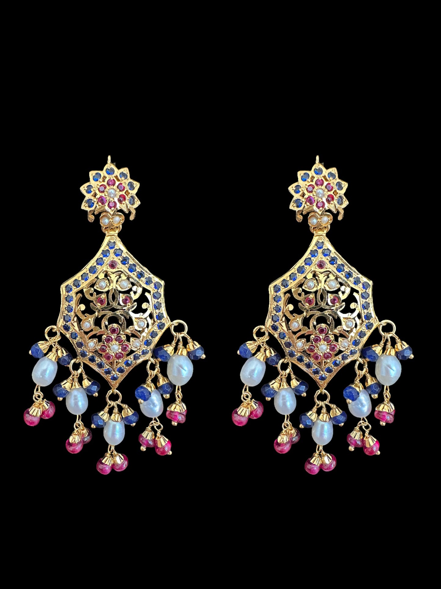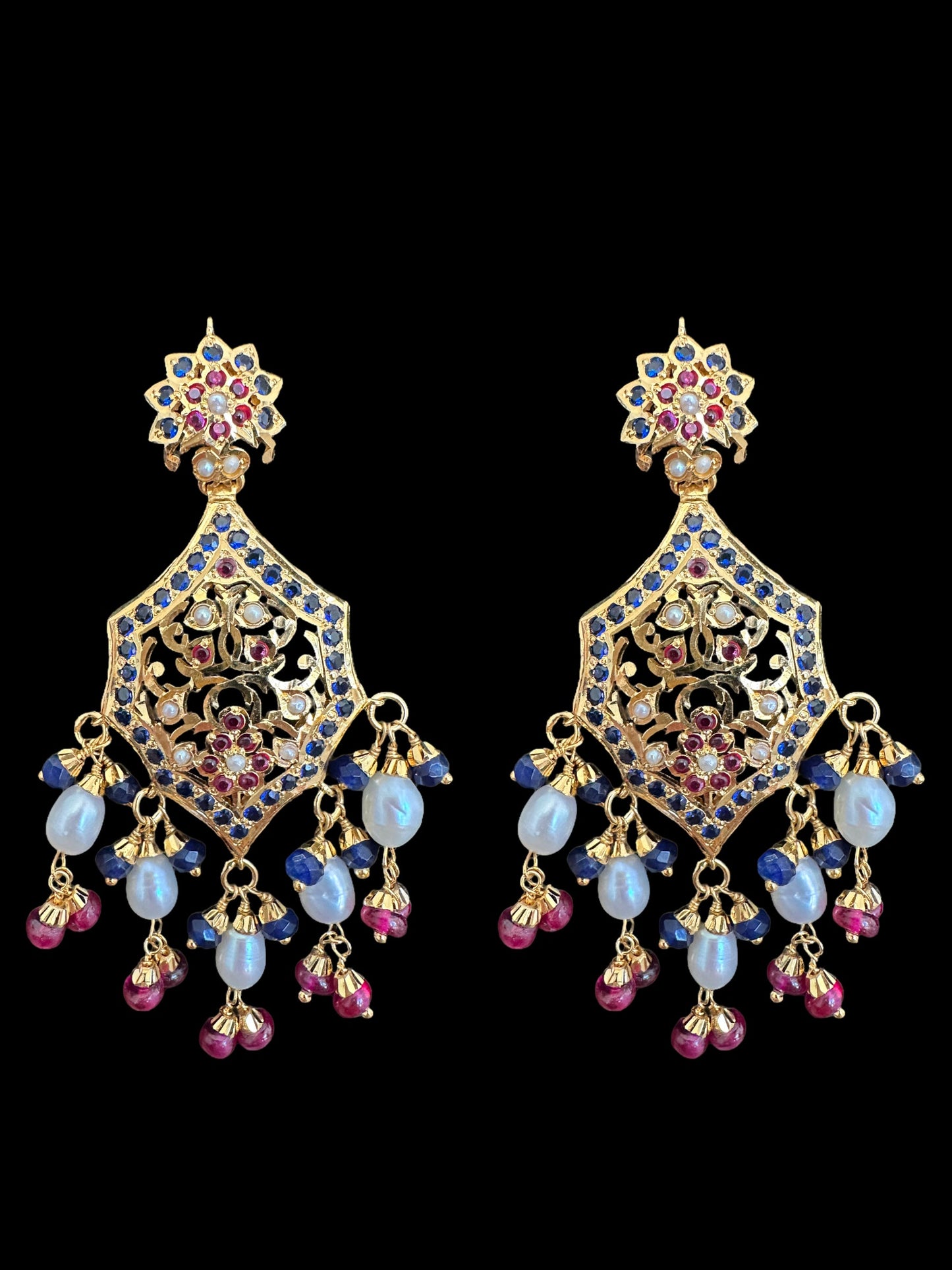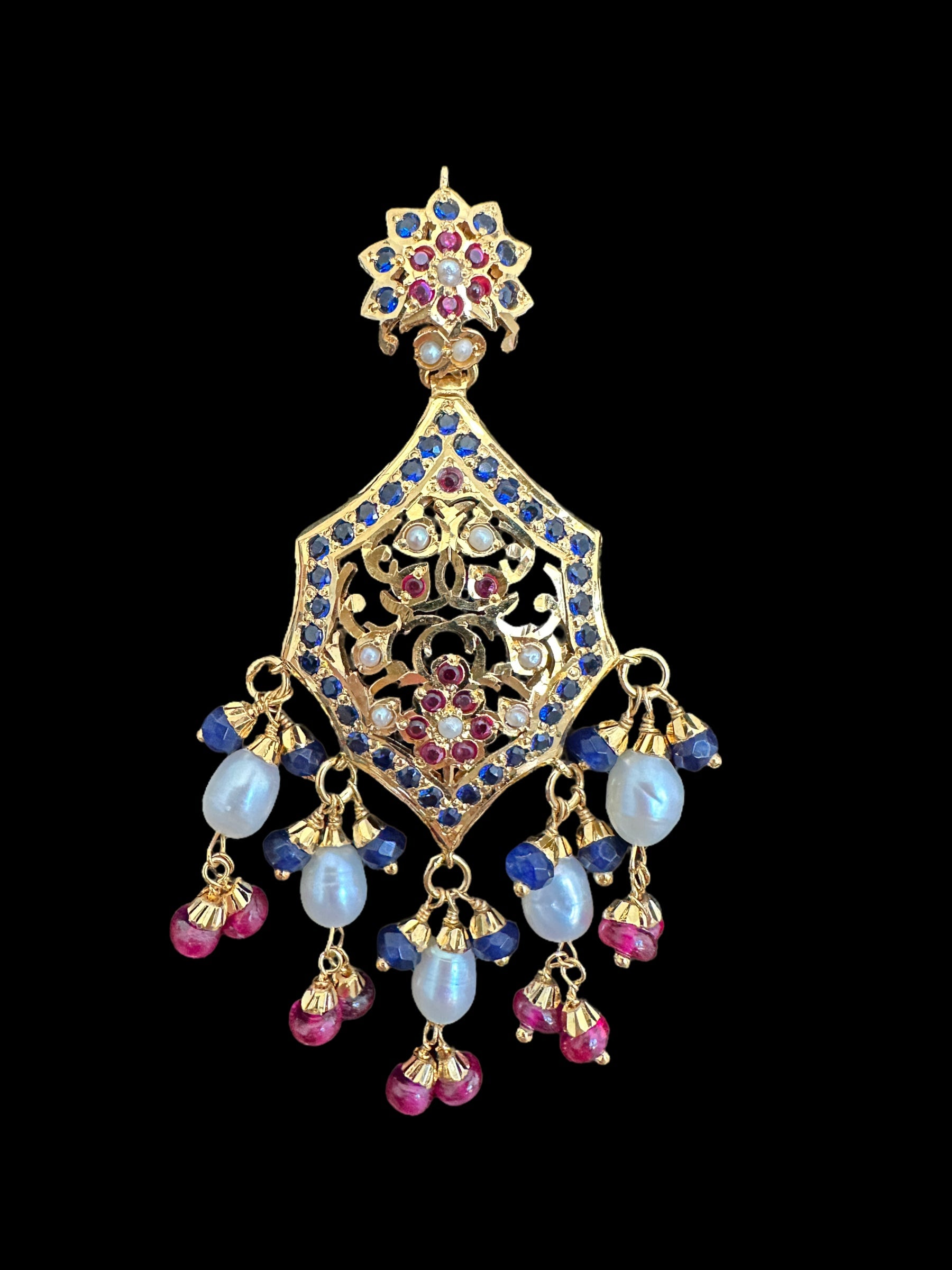 Gold plated silver earrings in ruby and sapphire with pearls ( READY TO SHIP)