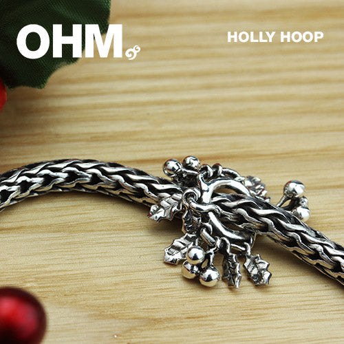OHM has created this magnificent HOLLY HOOP with finely intertwined branches and classic holly leaves and berries that dangle, shimmer, and catch the light, giving a rustle of movement and a sparkle of magic to your bracelet.