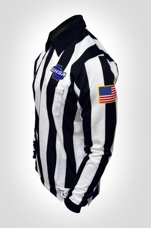 Sublimated Long Sleeve 2" stripe Georgia High School Football & Lacrosse shirt with GHSA logo on chest and American Flag on left sleeve.