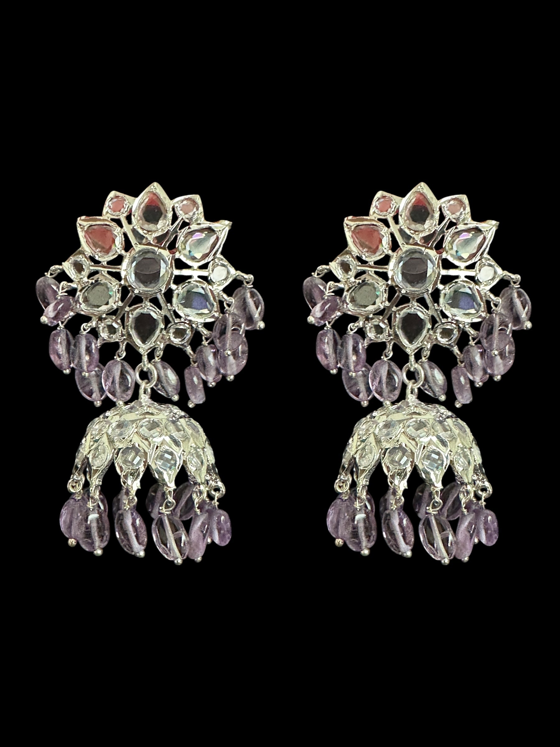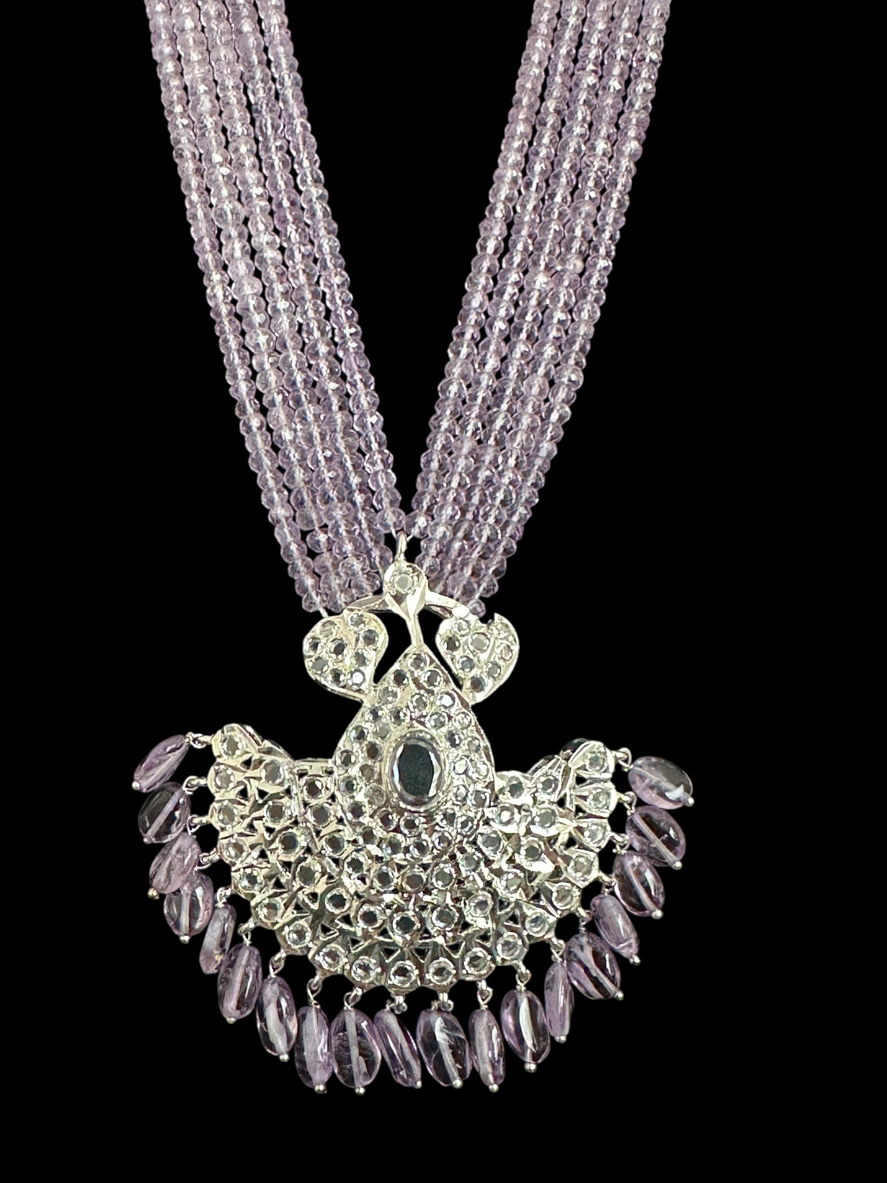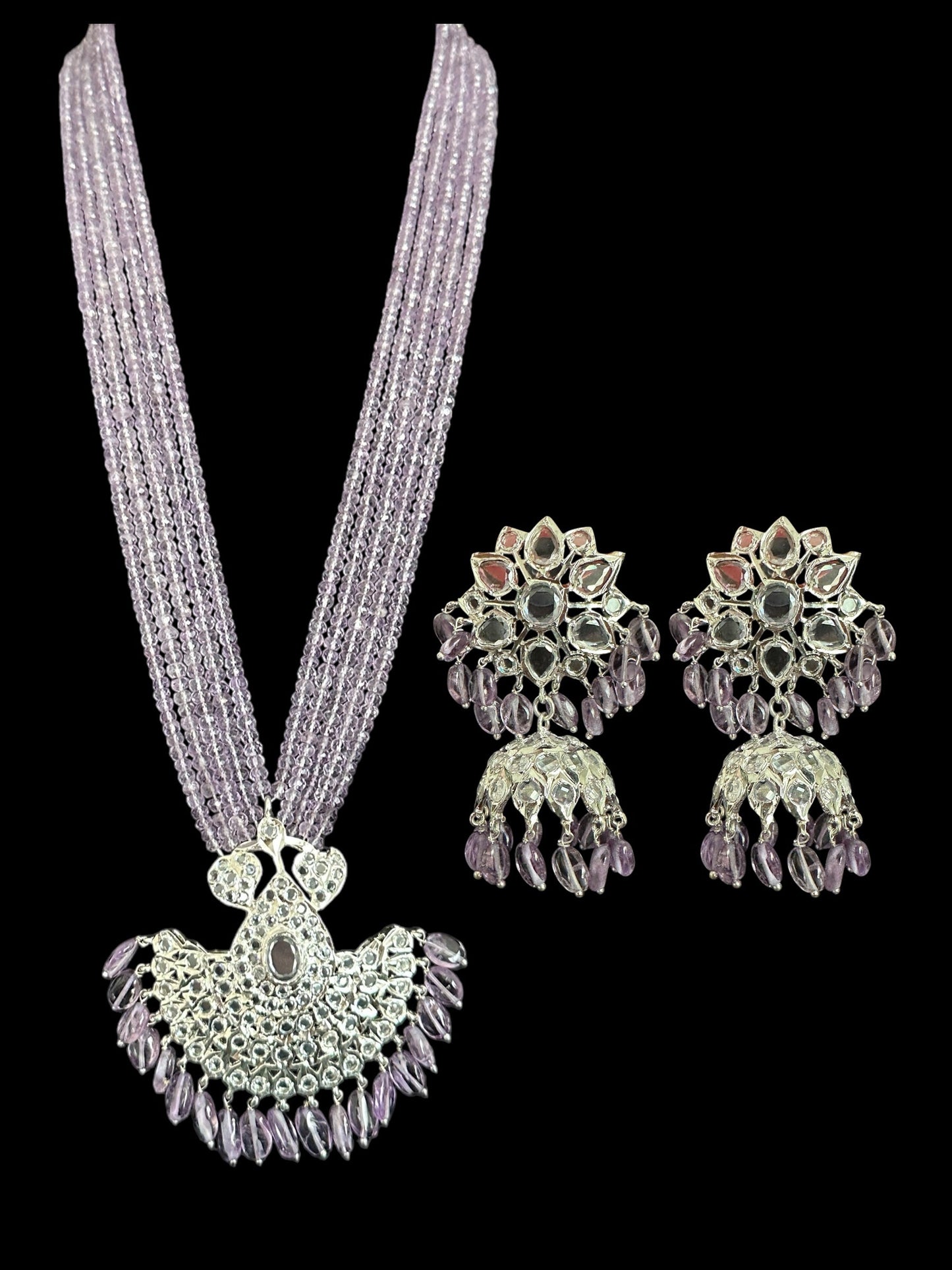 Khushi long necklace with earrings in real amethyst beads ( SHIPS IN 4 WEEKS )
