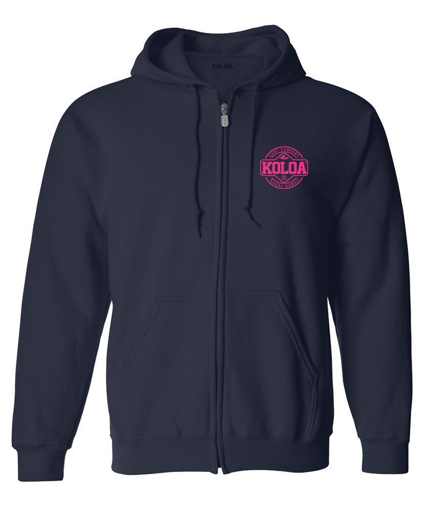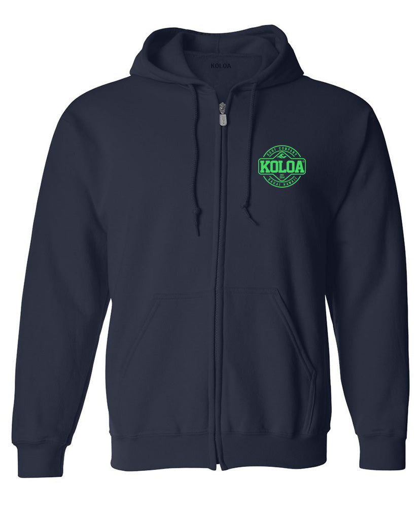 Koloa Surf Co.™ - Koloa Surf Dawn Patrol Logo printed with logo on Front and Back of Hoodie. A versatile full-zip hooded sweatshirt in our core weight. 7.8-ounce, 50/50 cotton/poly fleece