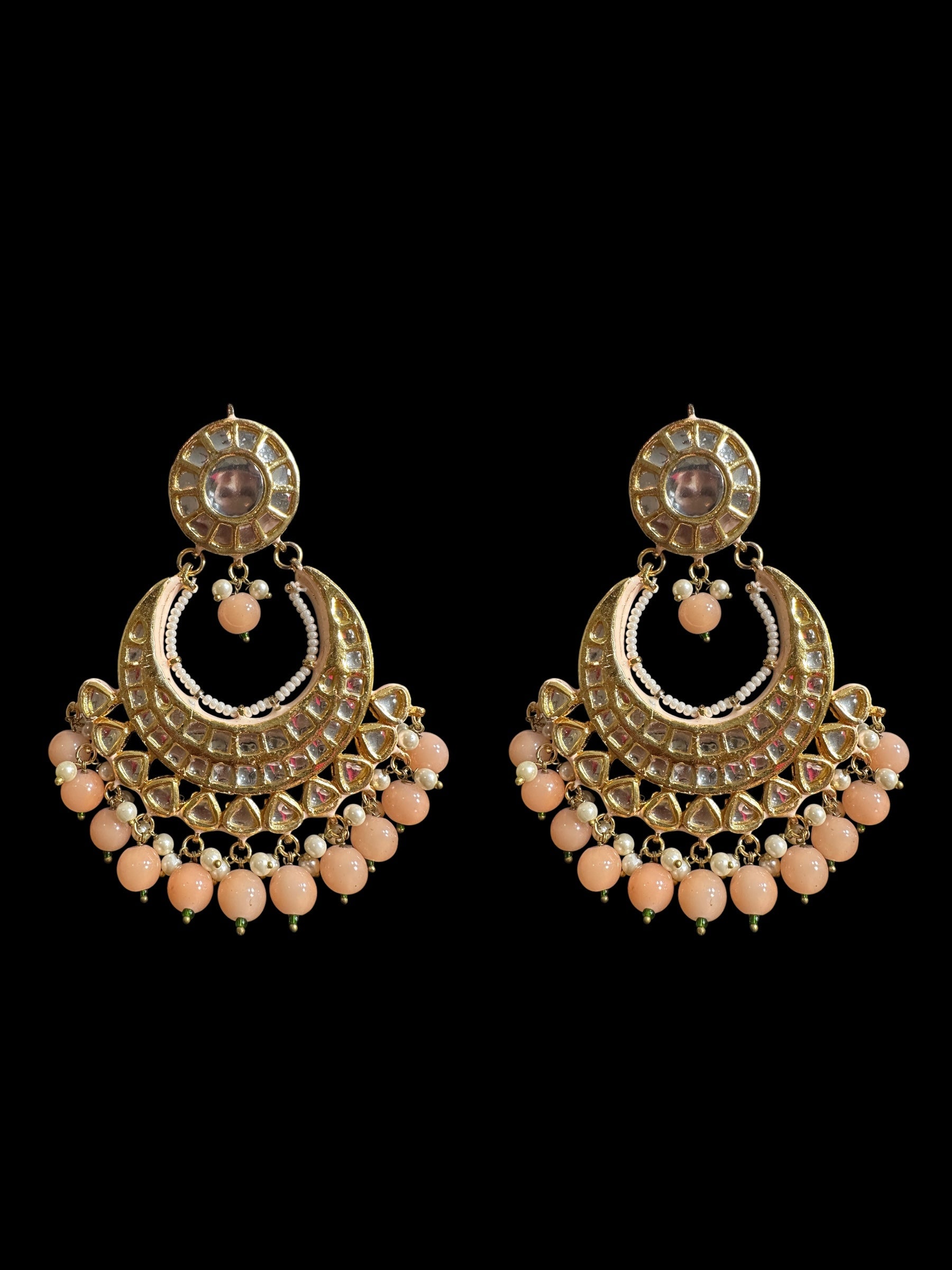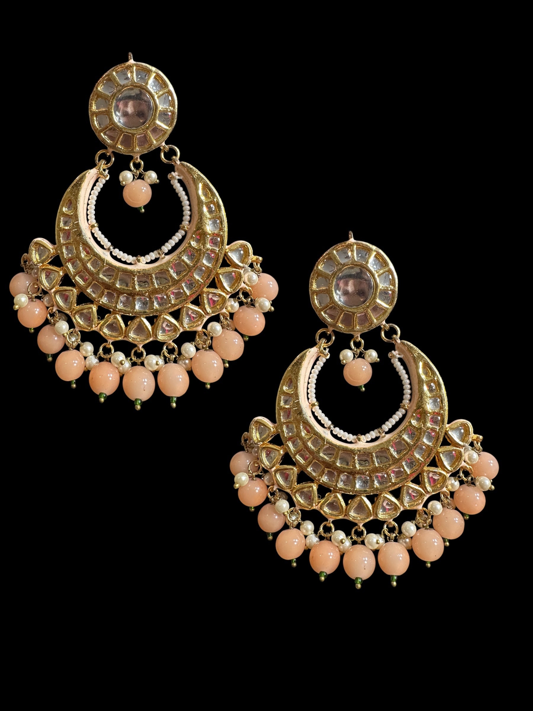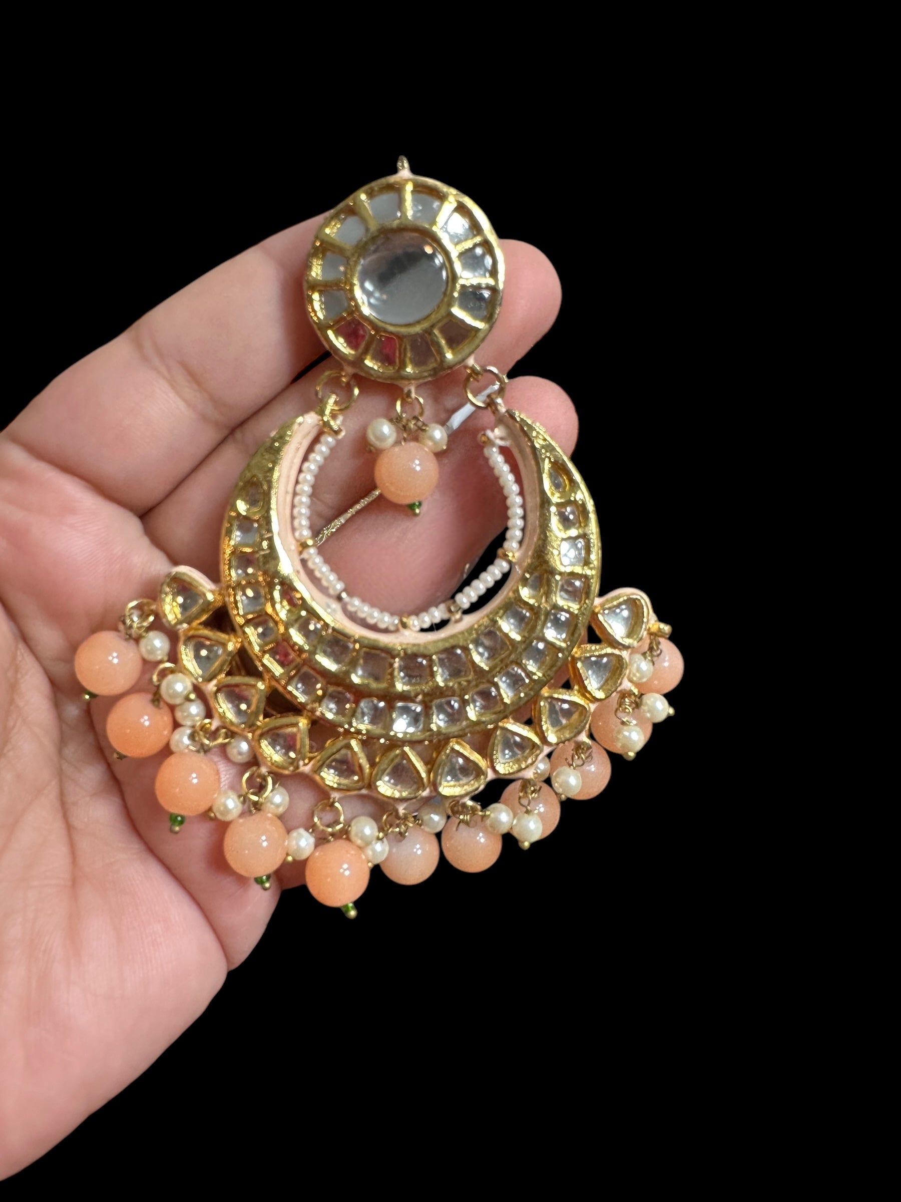 Kundan meena earrings - peach , Oversized chandbali ( READY TO SHIP )