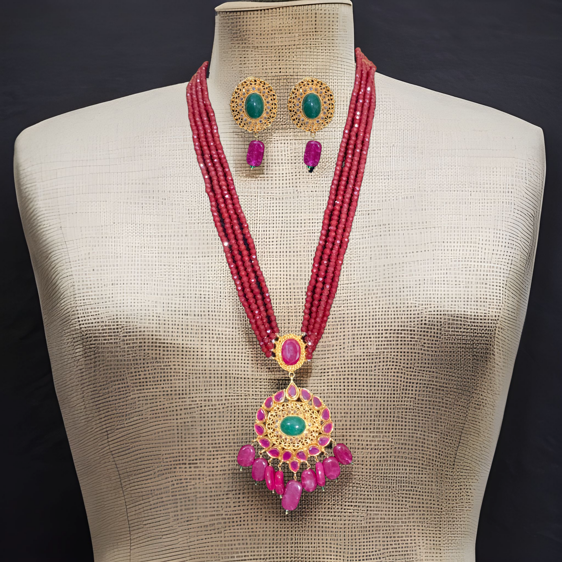 made using faux beads with cz polki and gold plating