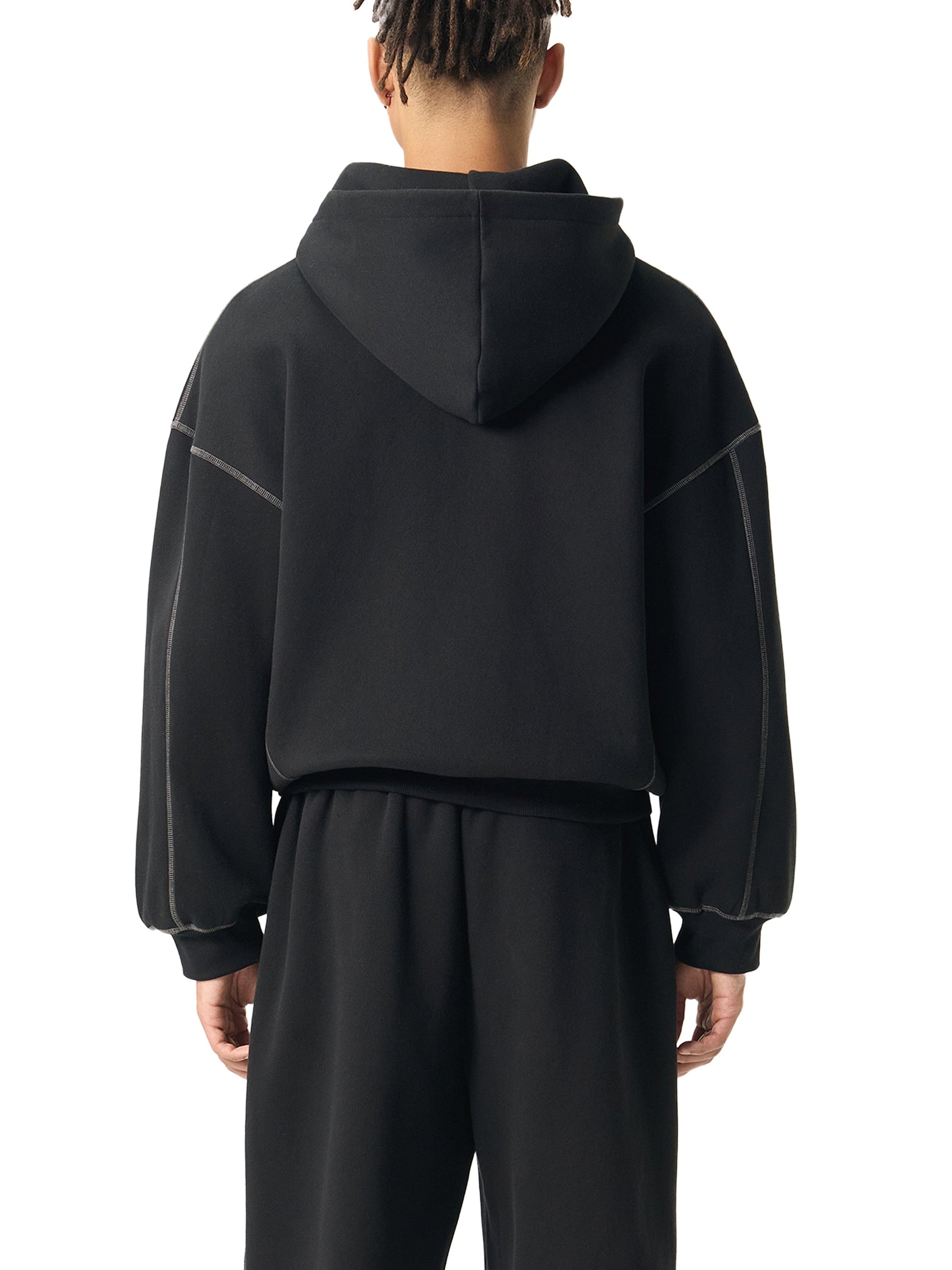 Love Bar Contrast-Stitched Boxy Fleece Zip Hoodie