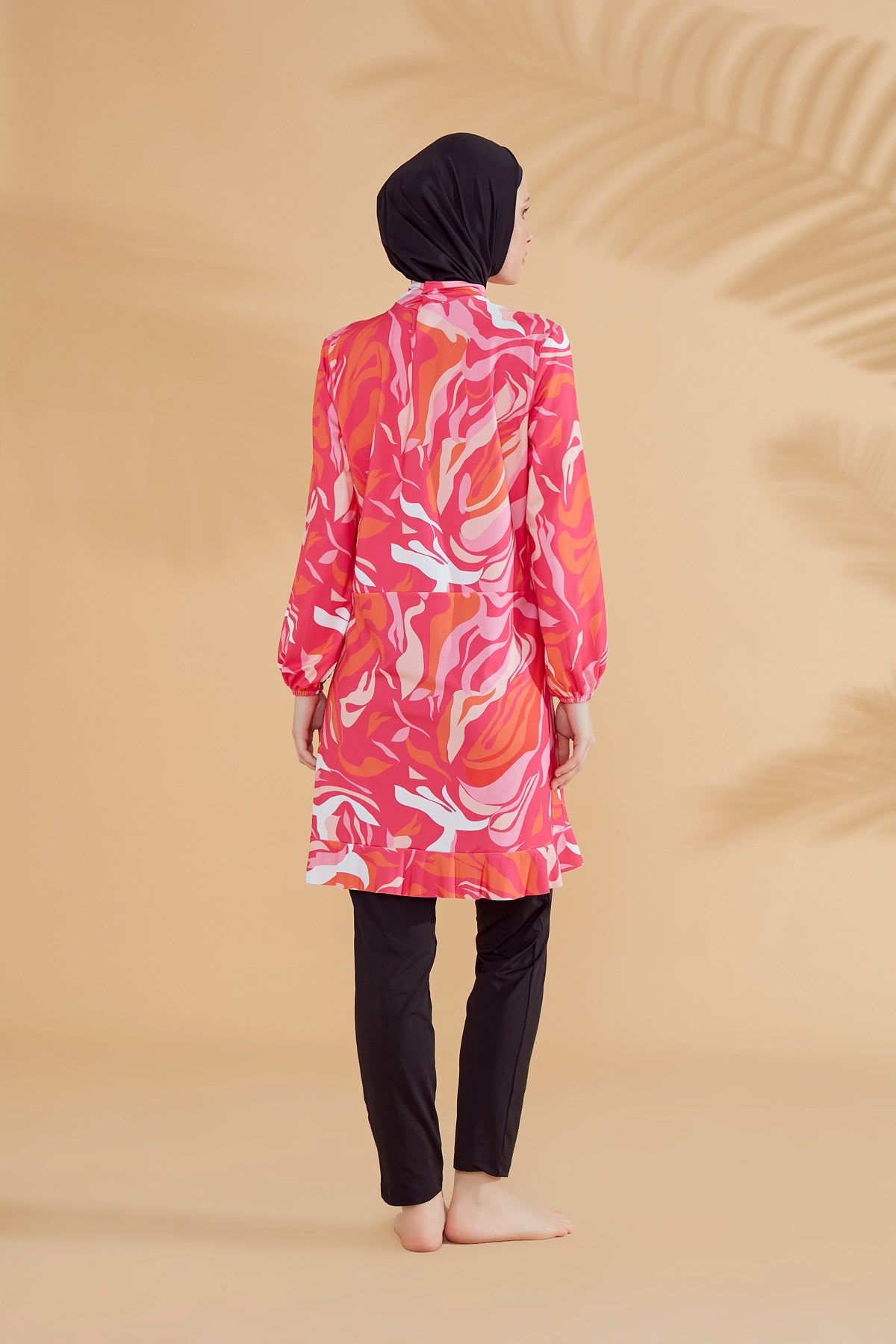 - There are drawstrings on the tunic and tights to prevent your swimsuit from riding up.