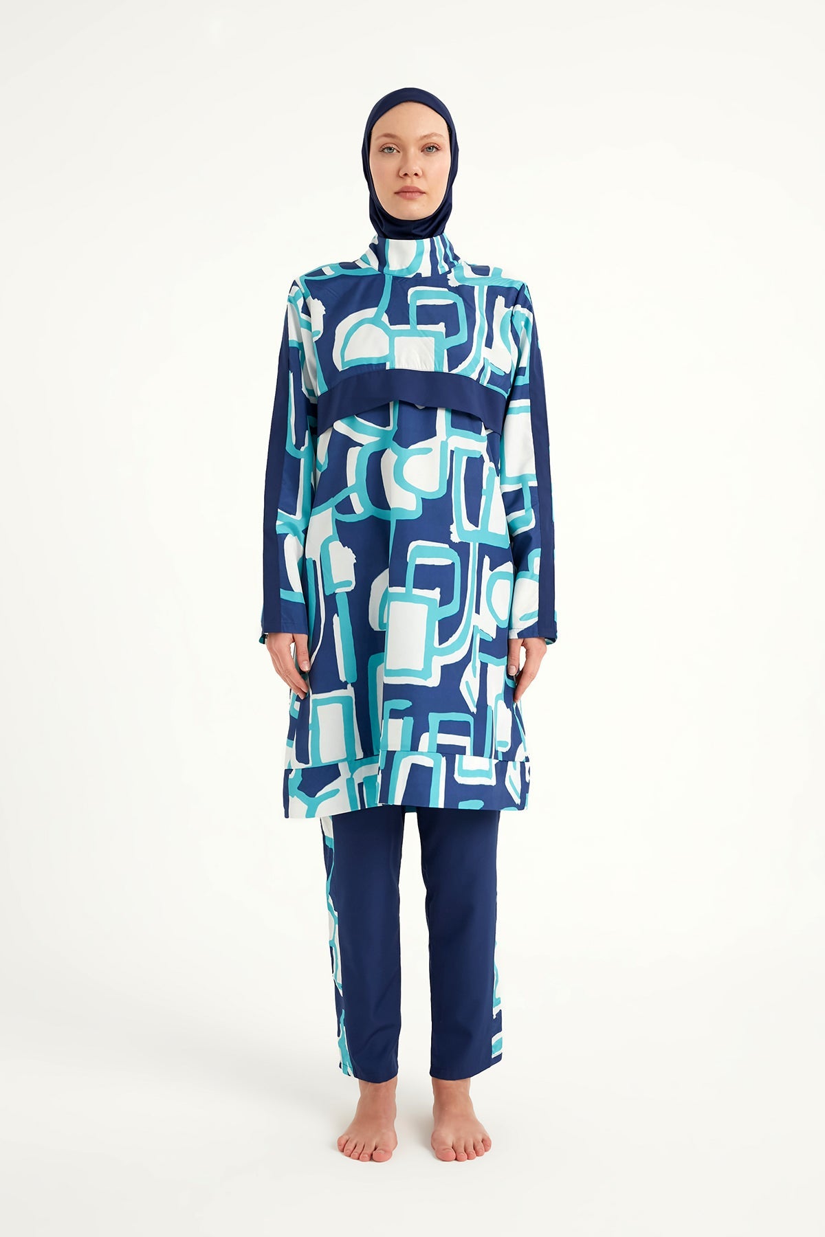 Navy Blue Full Coverage Modest Swimwear Set for Women R2513