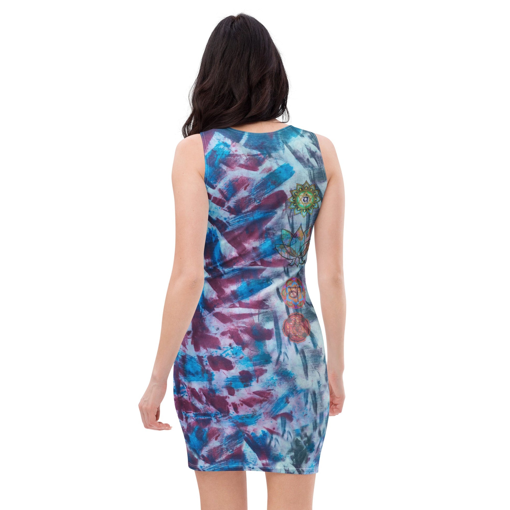 Make a statement and look fabulous in this all-over printed, fitted dress, featuring a stunning design inspired by the beauty of lotus flowers and Chakra prints. The lotus flower, revered in many cultures, symbolizes purity, enlightenment, and rebirth, making it a perfect representation of inner strength and beauty. The Chakra prints enhance this message, as they reflect the energy centers of the body, promoting balance and harmony.