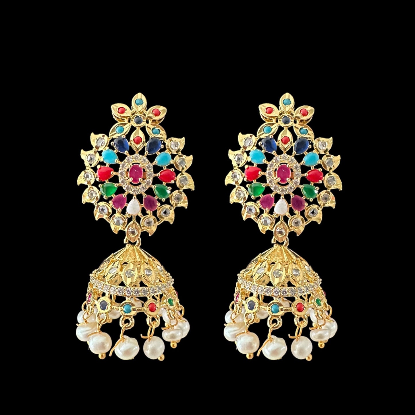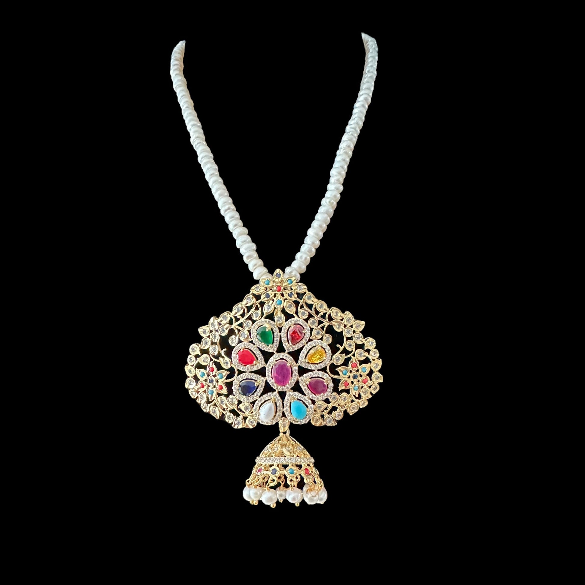PS316 fresh water pearl pendant set in navratan ( READY TO SHIP )