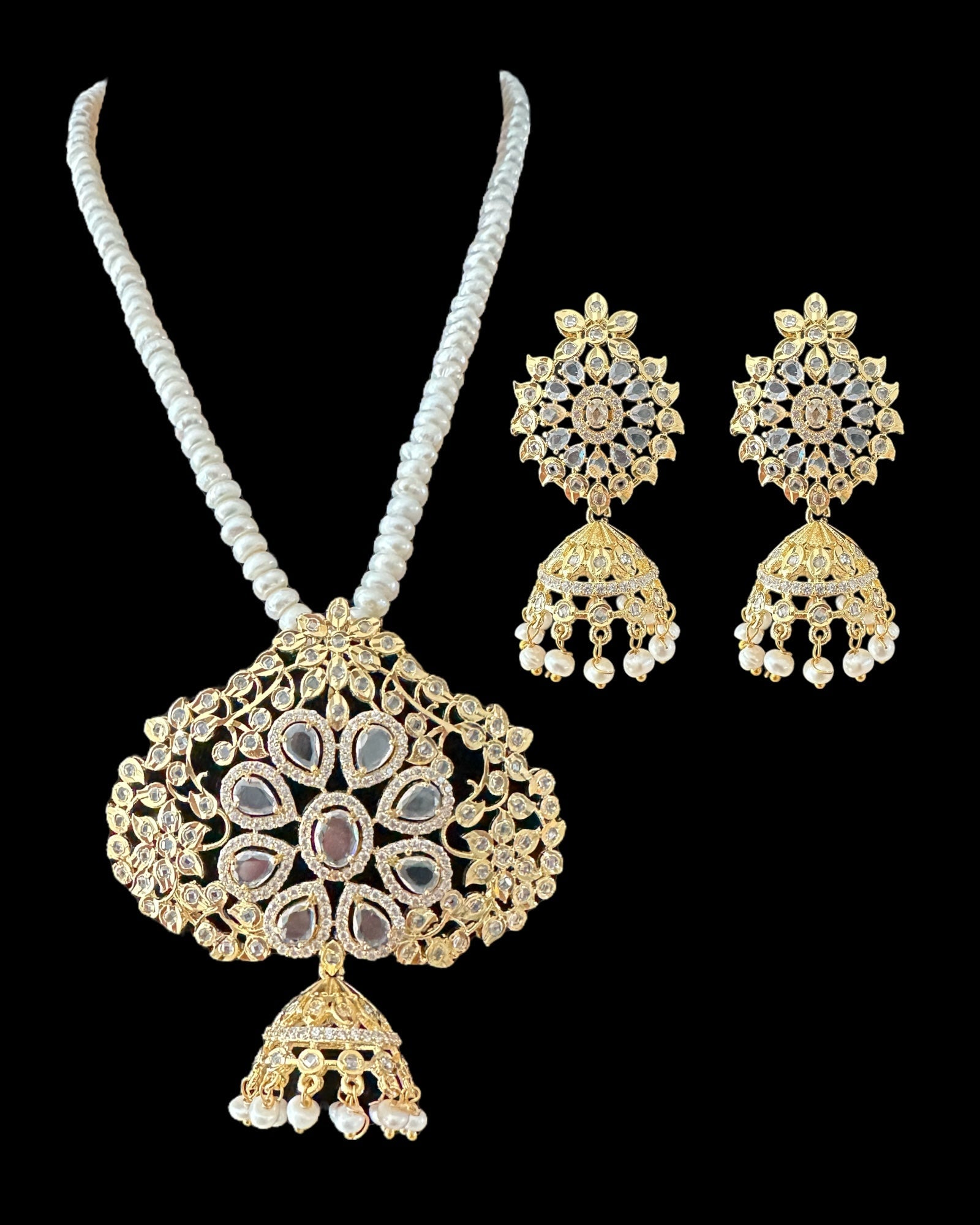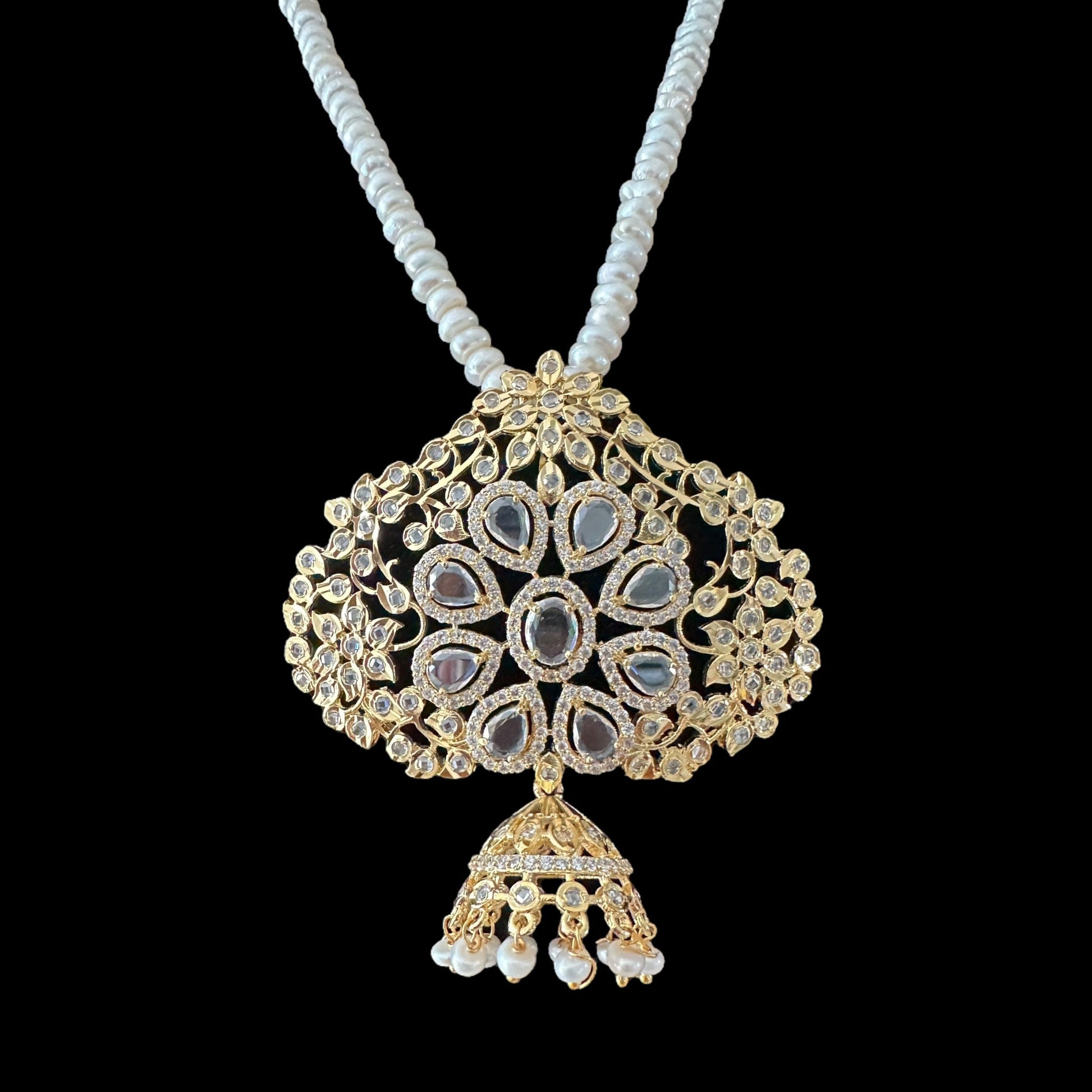 PS318 fresh water pearl pendant set in clear stones ( READY TO SHIP )