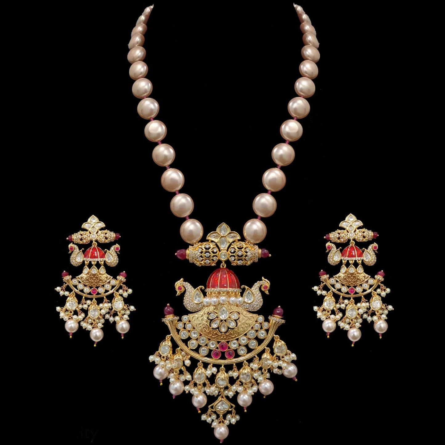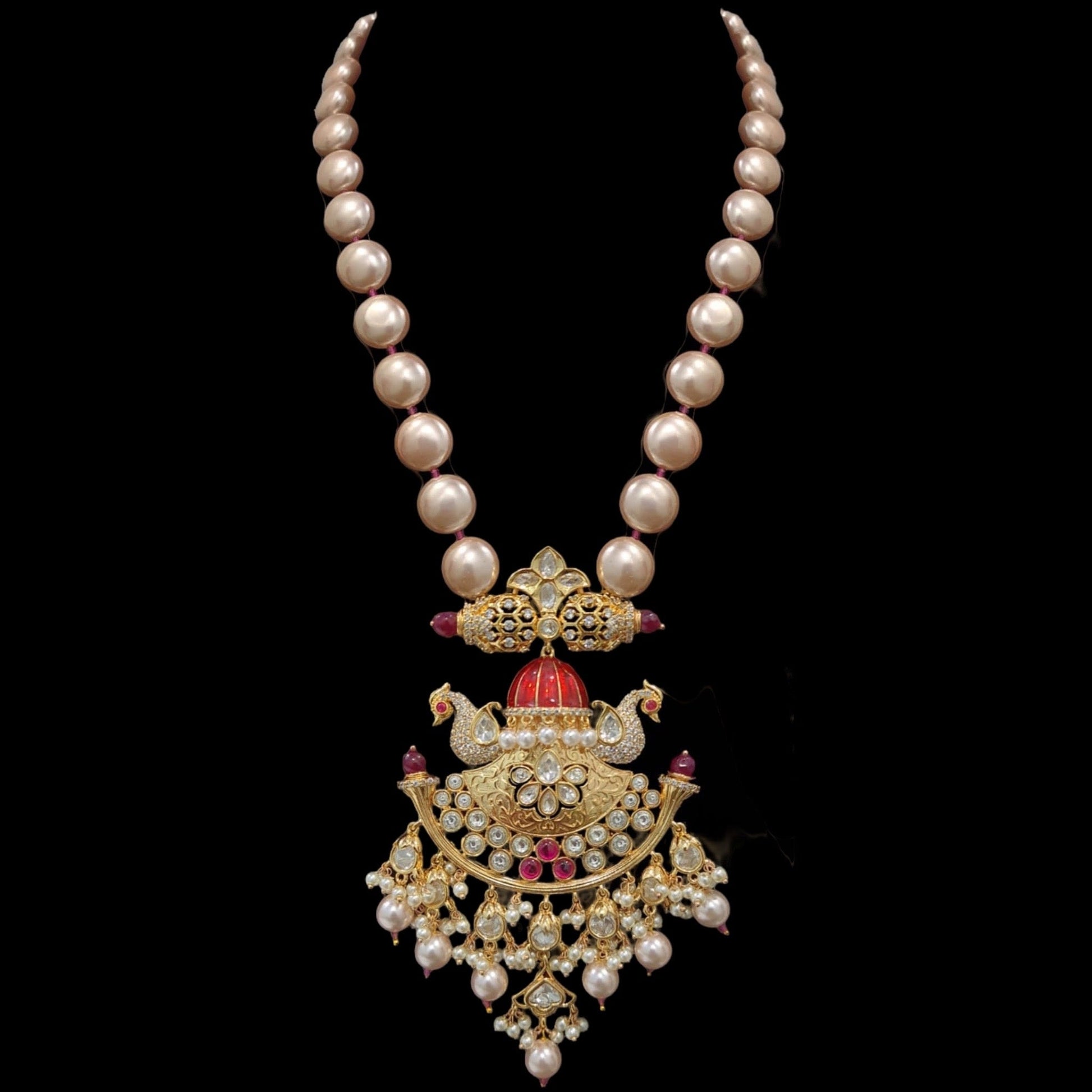 PS392 pendant set in pearls with Polki ( READY TO SHIP )